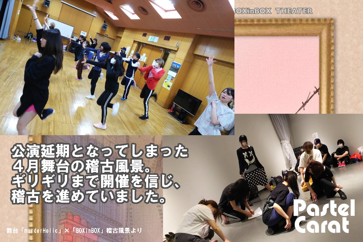 今回中止となった4月舞台「murderHolic」×「BOXinBOX」は、約1年前から開催に向かて準備を始め、既に稽古も始めておりました。そこにはたくさんの費用がかかっています。