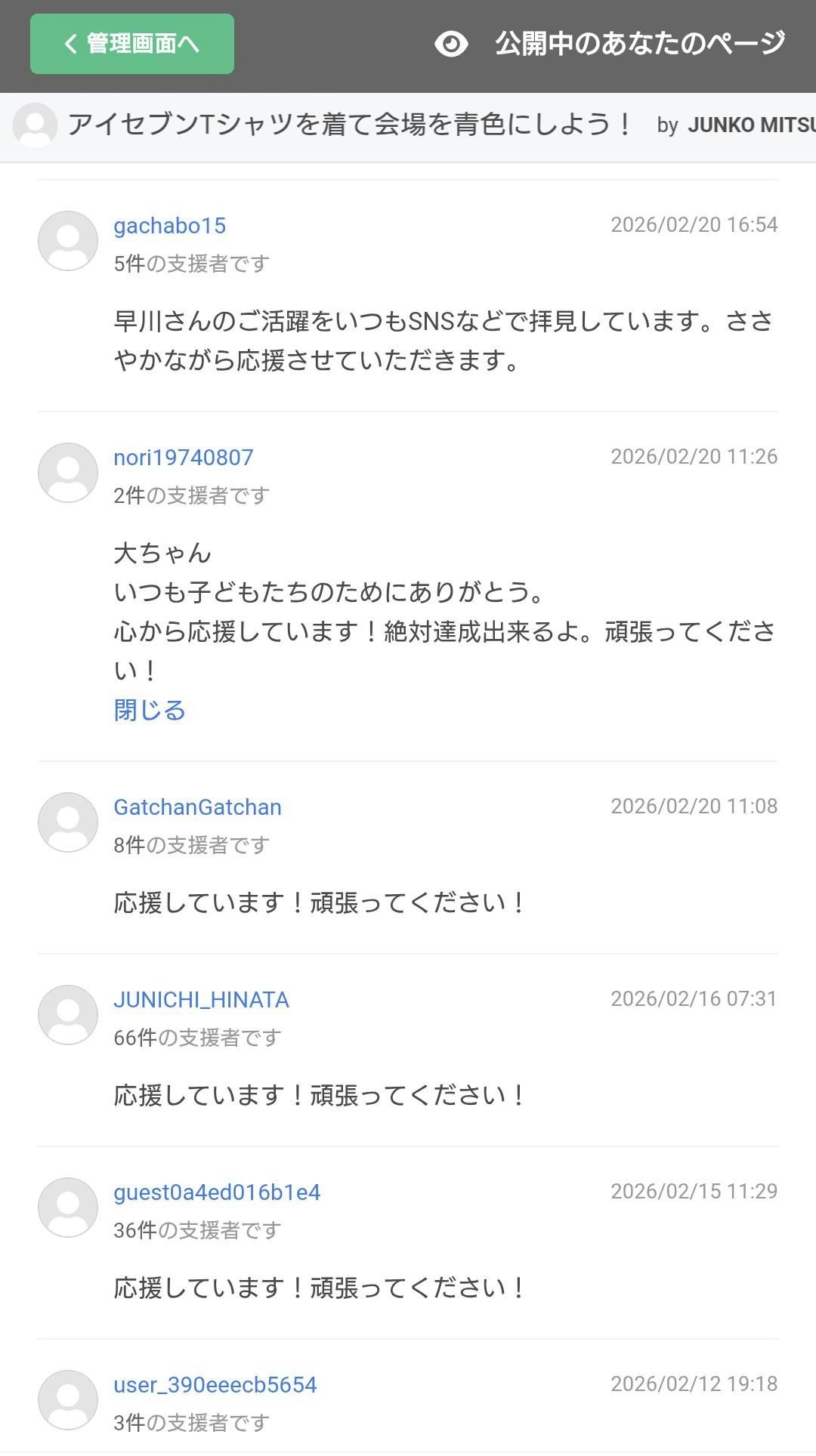 支援者の皆様の応援メッセージページ