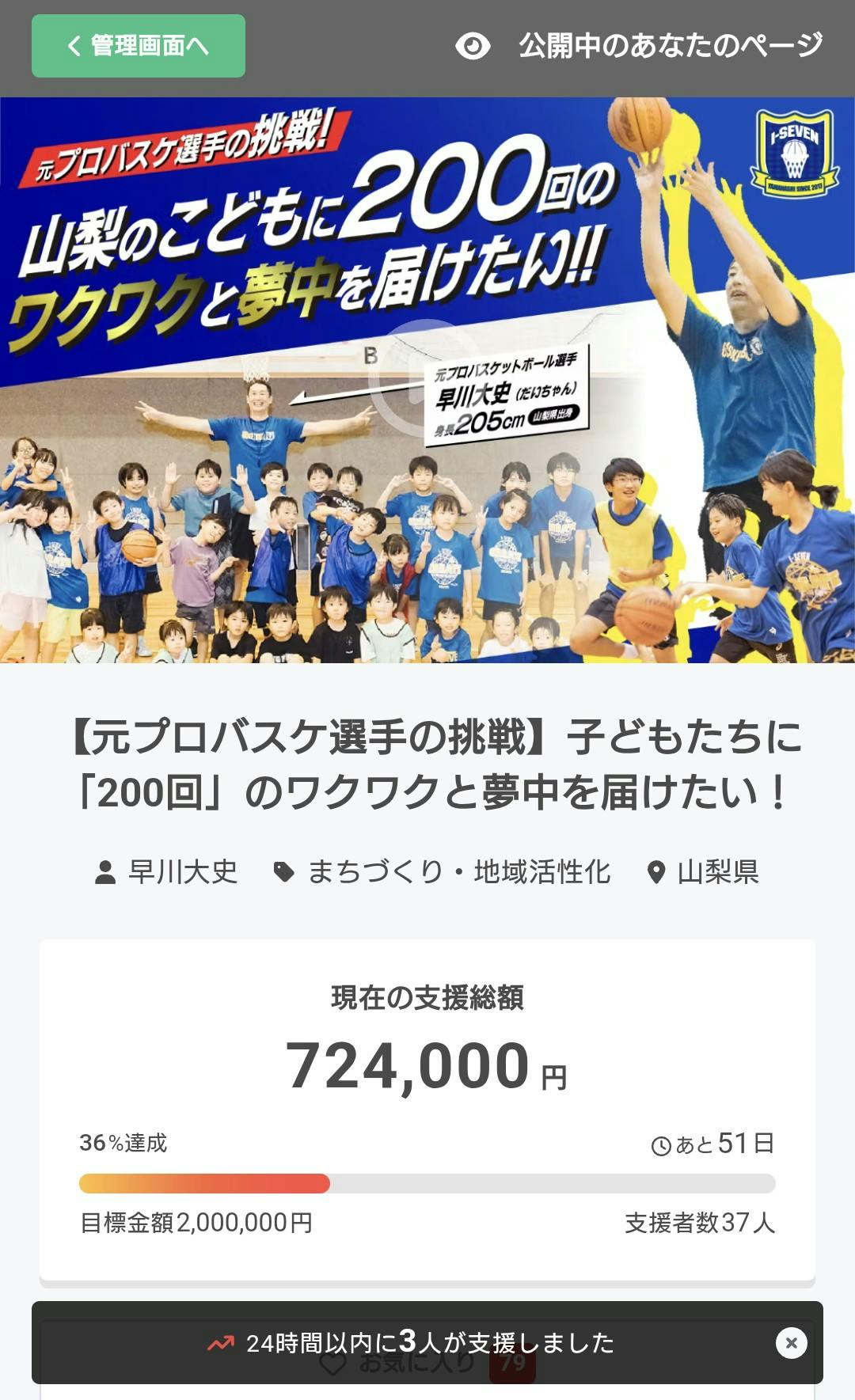 自己資金を数百万円切り崩し、命懸けで守っている「アイセブンキャンバス(無料出張バスケ)」。目標の200万円に届かなければ、この環境は資金がショートして完全に消滅してしまう。子ども達のための環境を創ることはできなくなります。。。……そんな苦悩の中、必死で日々の活動を続け、ご支援のお願いを発信しています。