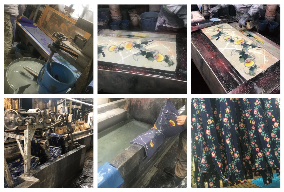 一度に20枚から30枚染めることのできるこの技法は明治時代に生まれました。