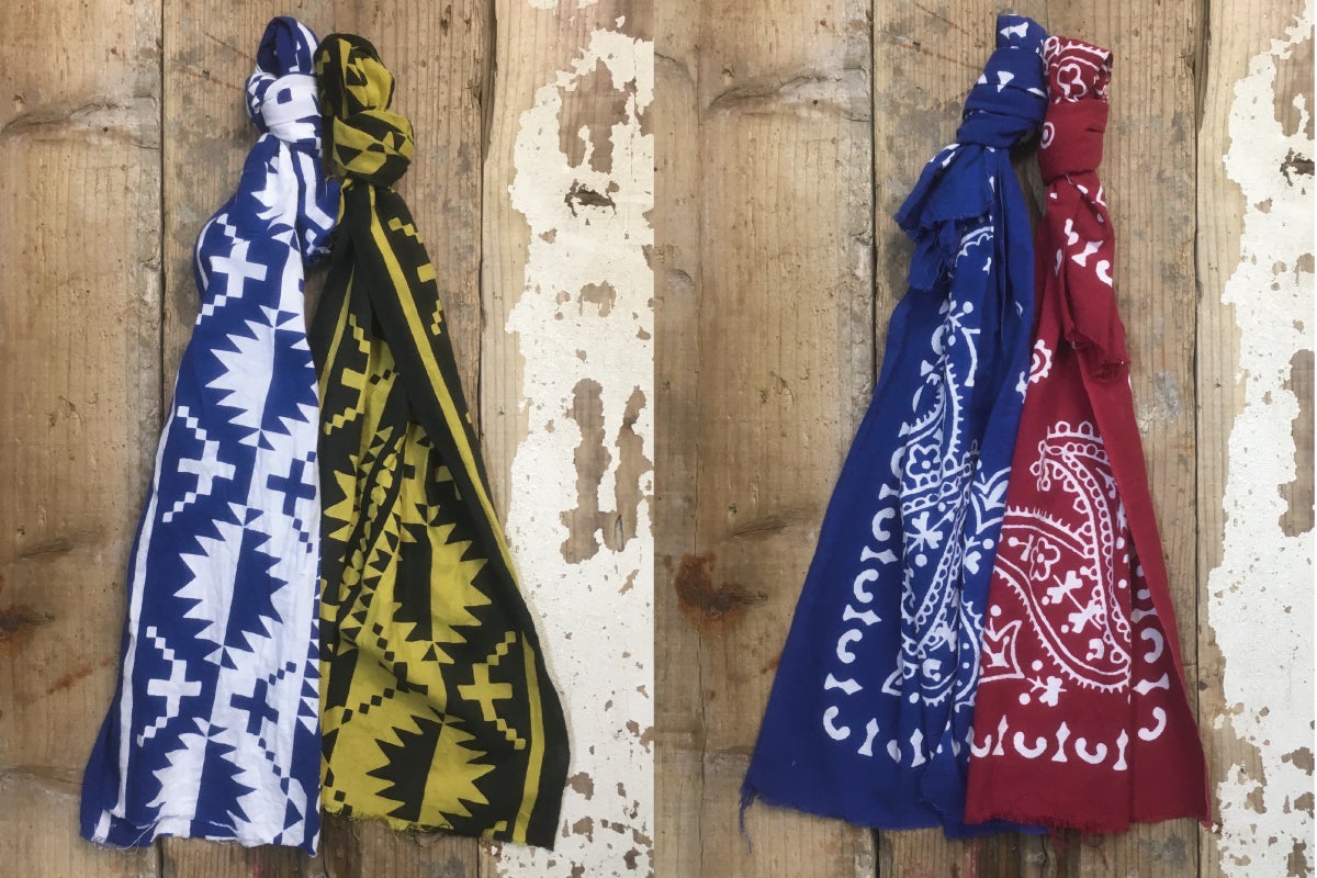 完成した手ぬぐいの柄は、1枚1枚違う表情で、ぼやけた感じやにじみ感が出て