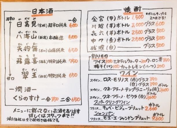 全体的にリーズナブルな値段の居酒屋ですが、日本酒常時20種類以上あり、レアなものから知られてない美味しいお酒など、こだわりの日本酒を用意しています。
