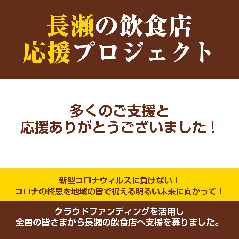 長瀬の飲食店応援プロジェクトに、たくさんのご支援と応援ありがとうございました。本日、ご支援いただきましたすべての方への「チケットのお届け」と、長瀬酒バル公式サイトにて「応援者さまの掲載」が完了しました。応援者さま掲載ページ(長瀬酒バル公式サイト)https://nagasebar.net/project-thanksご確認お願いします!お申込み時に入力いただきましたメールアドレスに誤りがあり、チケットが届いていない事例がありました。現在、すべての方に「チケット受け取り」のご案内メールを送信済みです。==========================【CAMPFIRE】メッセージを受信しました for nagasebar==========================という件名で、お申し込み時に入力していただいたメールアドレスへ、6月24日~25日の間にお届けしています。もし届いていない場合は、以下のメールアドレスまでご連絡ください。mail@nagasebar.net対応させていただきます。これで、クラウドファンディングへの挑戦は終了しますが、今後はご支援いただきました皆さま1人1人の期待にお応えできるよう頑張っていきます。皆さまとお会いできる日を、店主一同楽しみにしています。そのときは皆で乾杯しましょう!本当にありがとうございました!