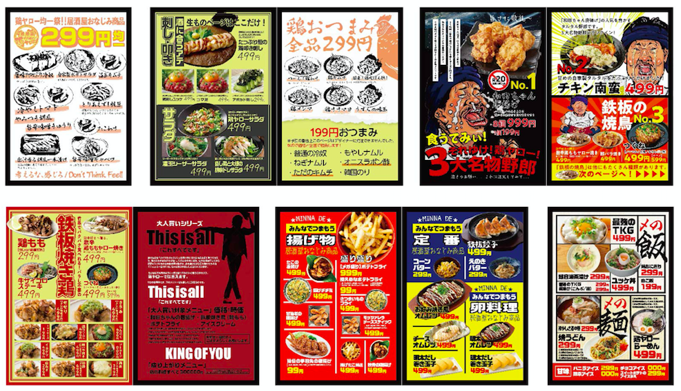 この時、出来たのが角ハイボール50円、サワー、カクテル、焼酎99円、生ビール280円のプライスレンジでした。この、松原団地店はホームセンターで板を買ってきて、拡大カラーコピーで看板を自分たちで作りました。両面テープで。初期投資はこみこみ50万位だったと思います。