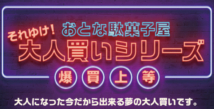 なんとっ!お金を払うだけで、おとなの駄菓子屋をおとな買いできちゃいます!!