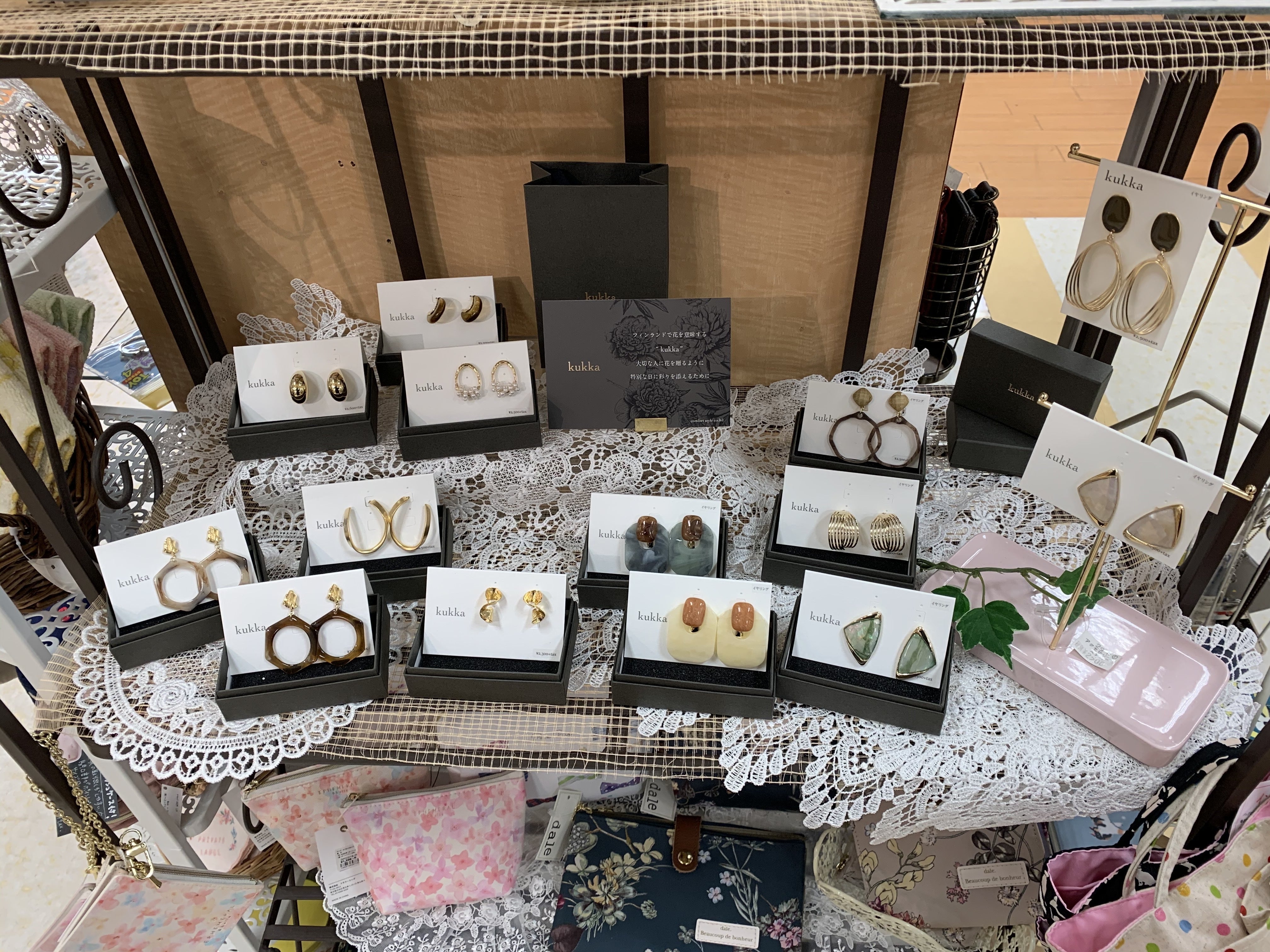 御支援頂いた際には、弊社のレギュラーブランド『Iris』のピアス、イヤリング、ヘアーアクセサリーと新ブランドの『kukka』のアクセサリーをお送りする予定です。