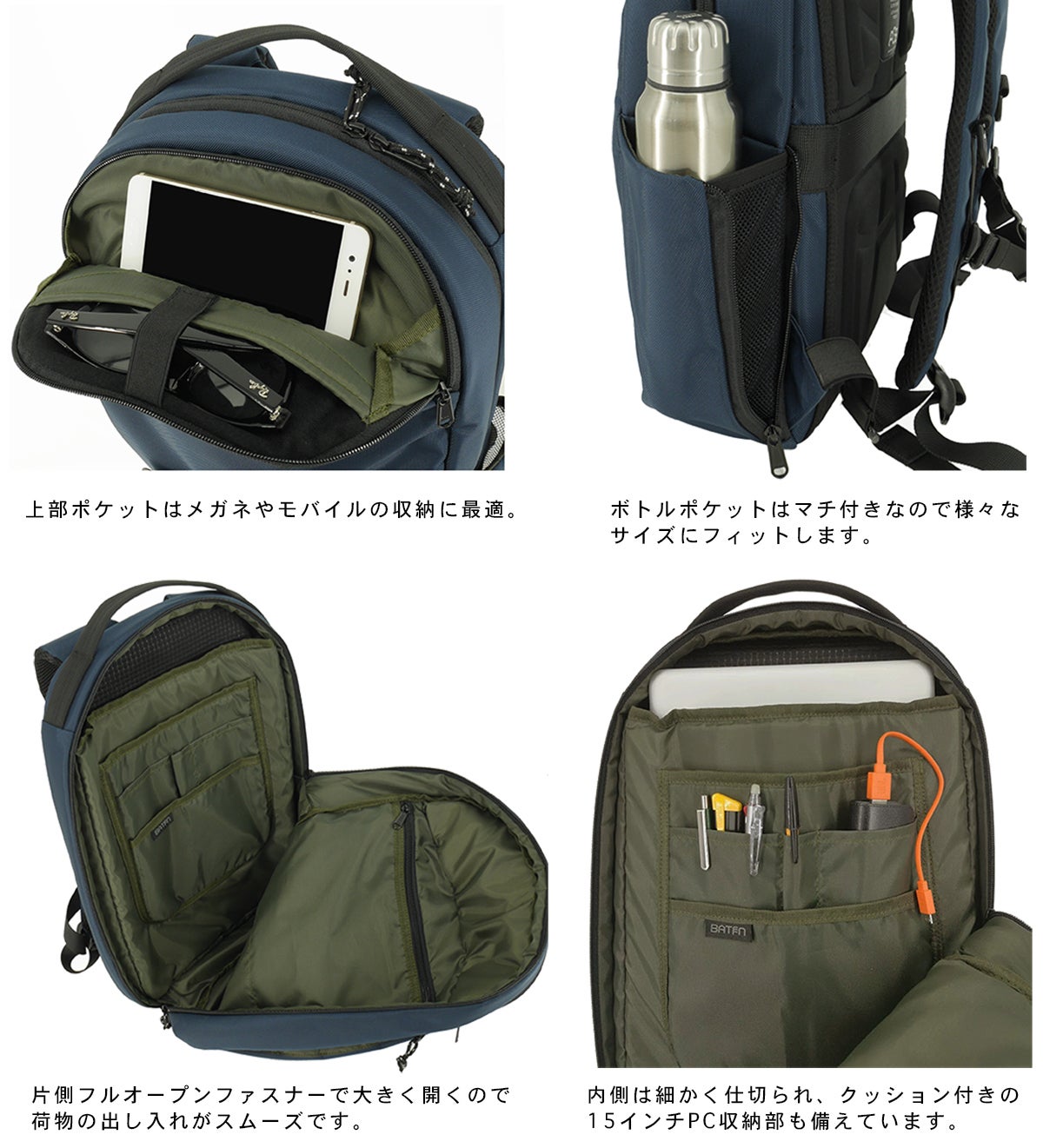 - 機能的でありながらスリムで、満員電車でも邪魔にならないデザインです。