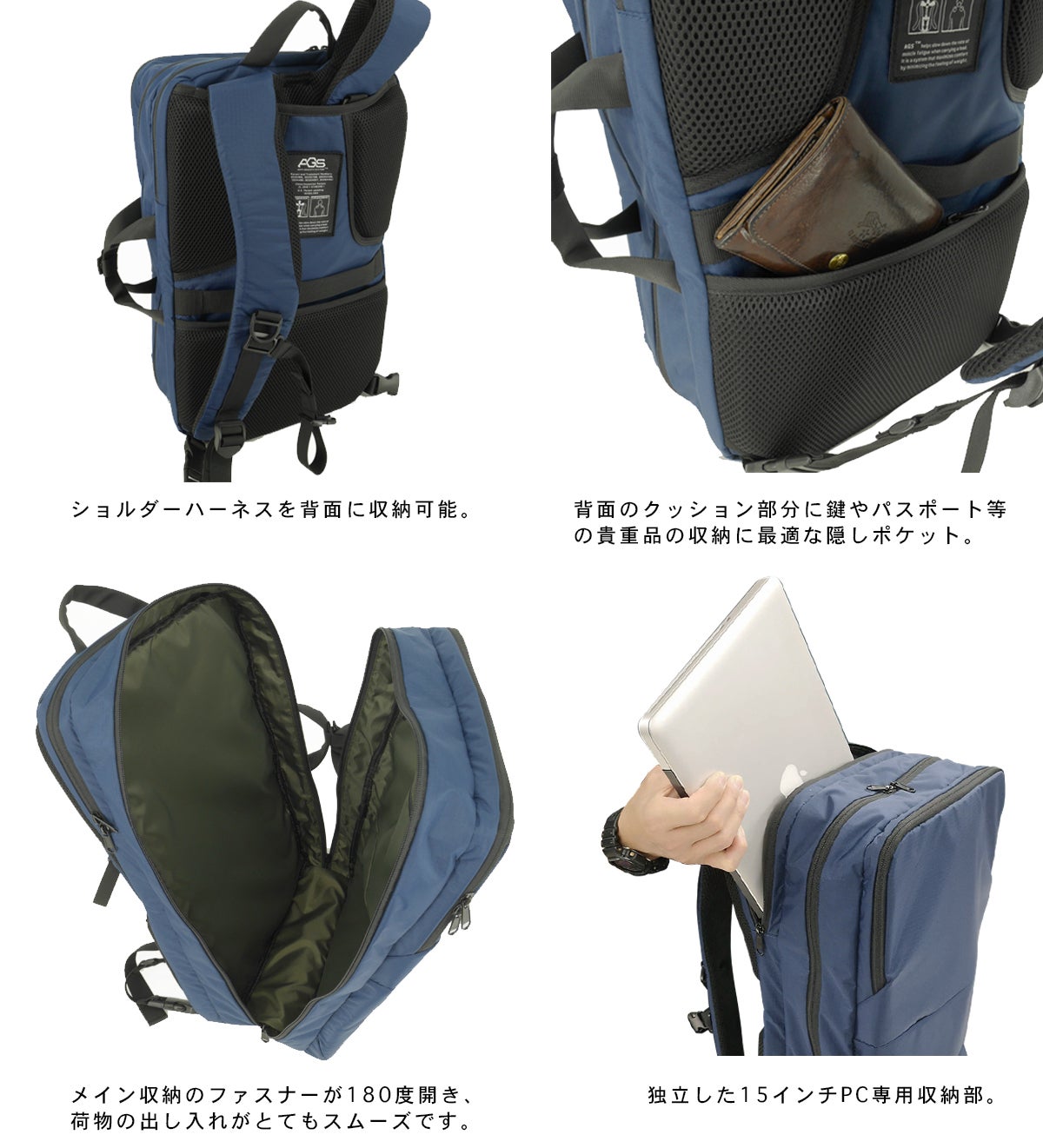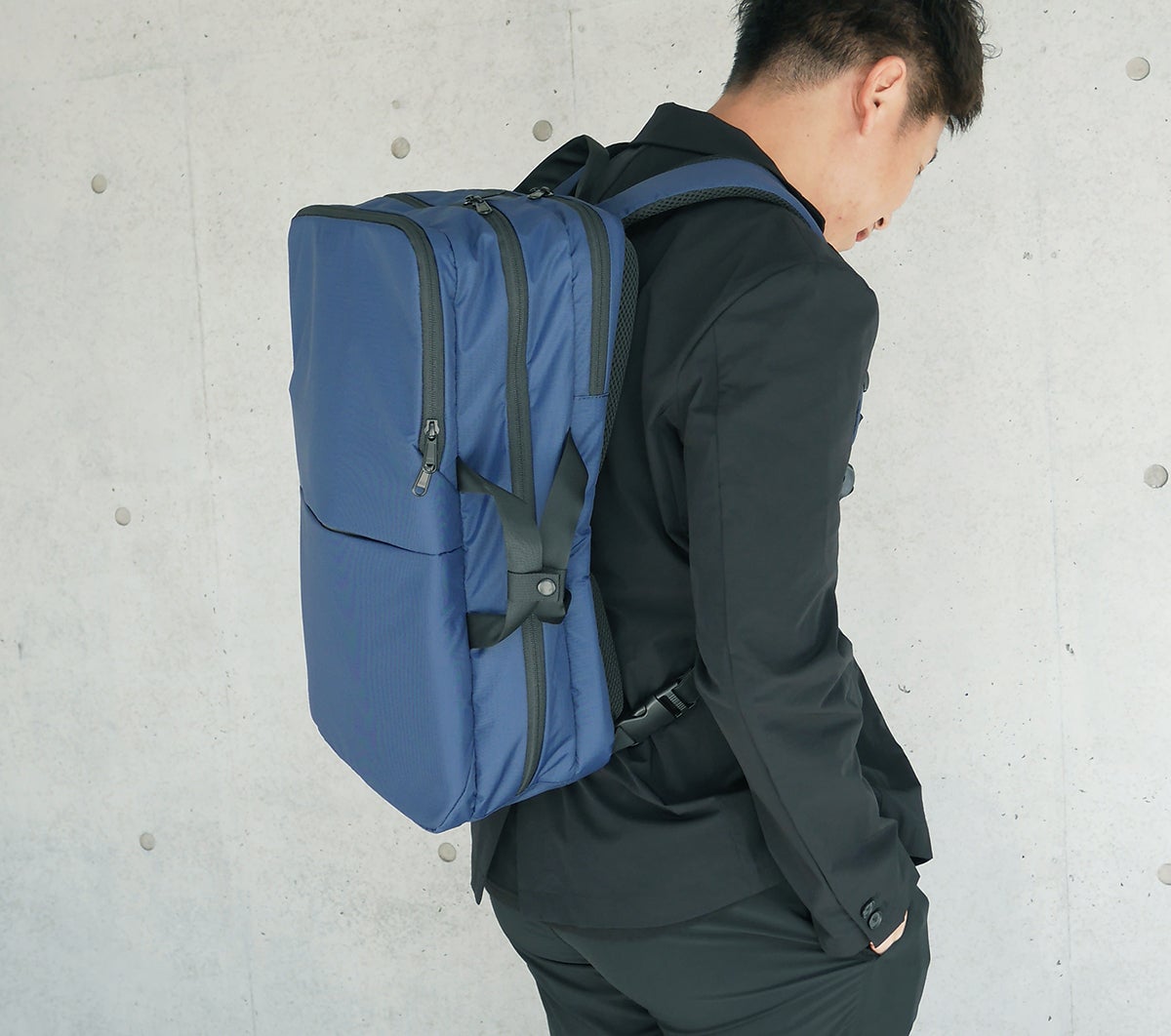 - シリーズの中で最もスタイリッシュでアクティブなデザインなので、プライベートからビジネスまで幅広いシーンでマッチします。メイン収納のファスナーは片側が大きく開くアシンメトリーデザインで荷物が取り出しやすい設計。