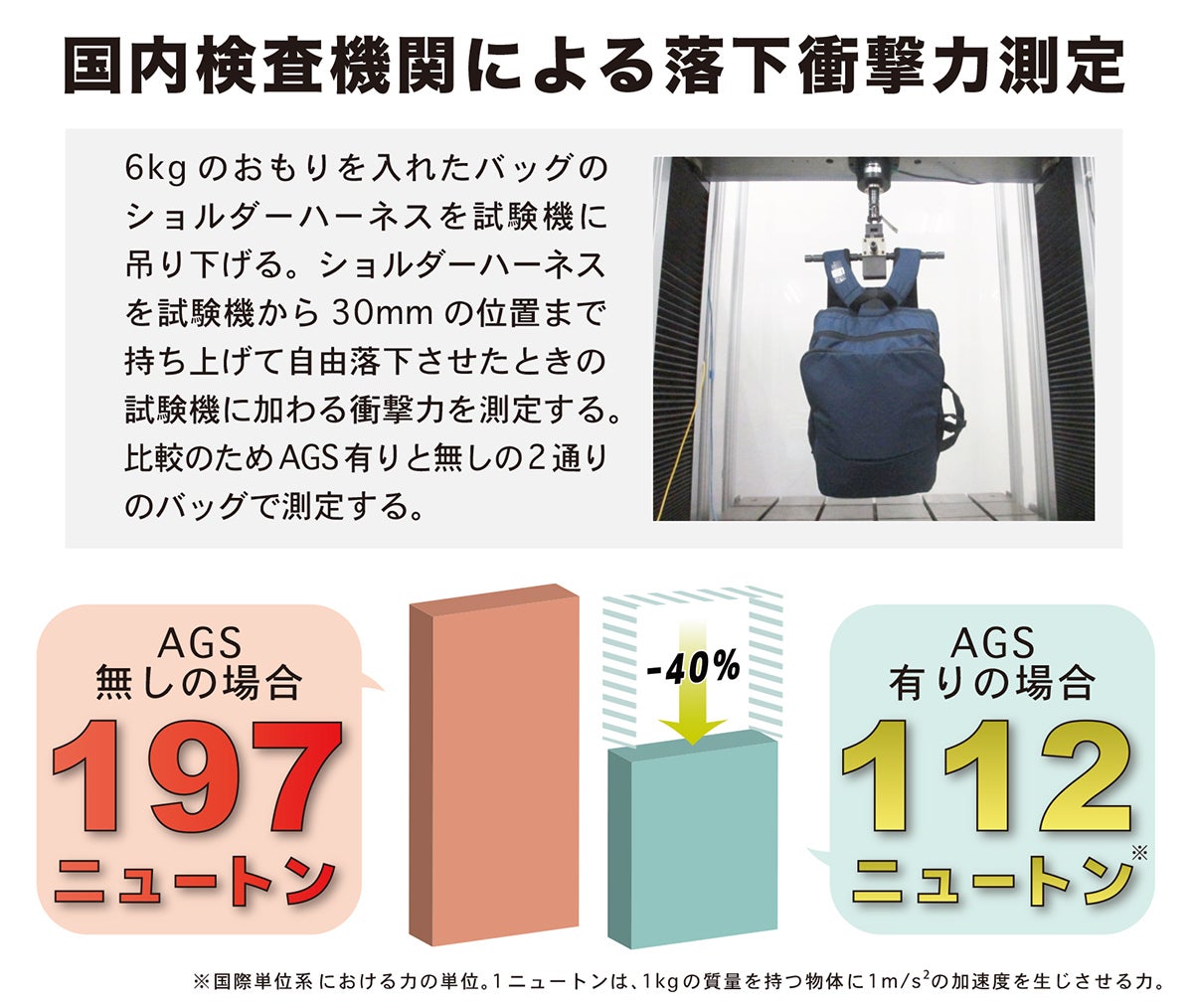 『BATEN』は全てのラインナップでショルダーハーネスにAGS*を搭載しています。