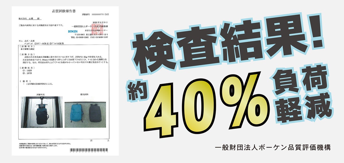 AGSのサスペンション機能により、パックパックが上下にスライドして身体への負担を軽くする今までにない「軽量感バックパック」です。
