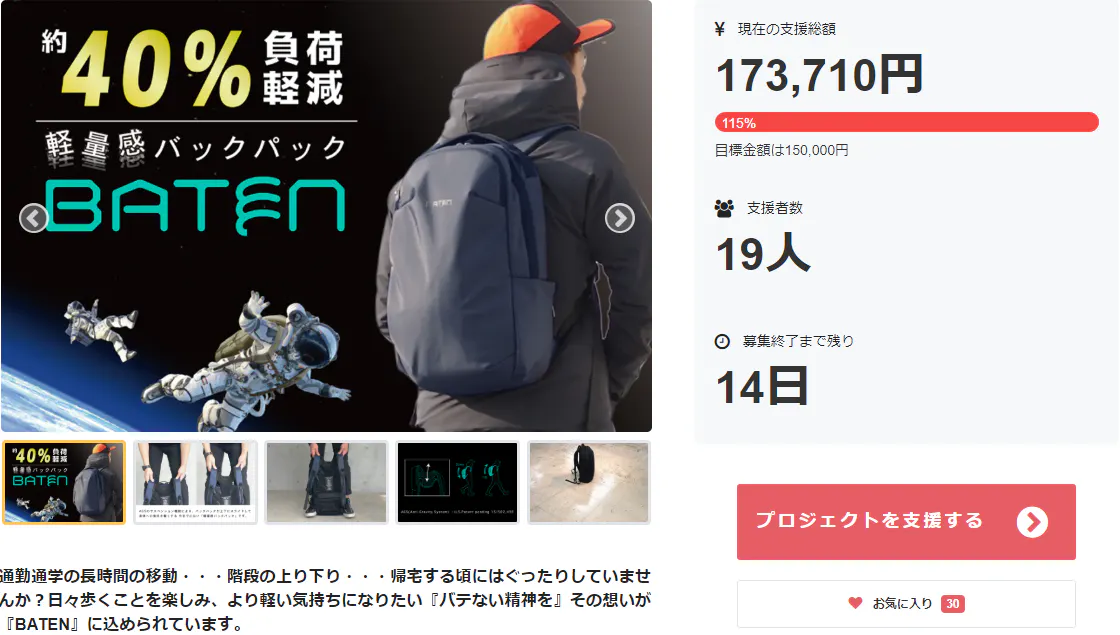 人々のライフスタイルが変わり、オフィスに縛られず自宅やカフェ等でのリモートワークが増えたことにより移動がラクになるバックパックが求められています。今回ご紹介する軽量感バックパック『BATEN』は2020年に生まれた新しいブランドのため、まだ市場にはありません。先行で入手できる場を設けたいと考え、このプロジェクトを立ち上げました。
