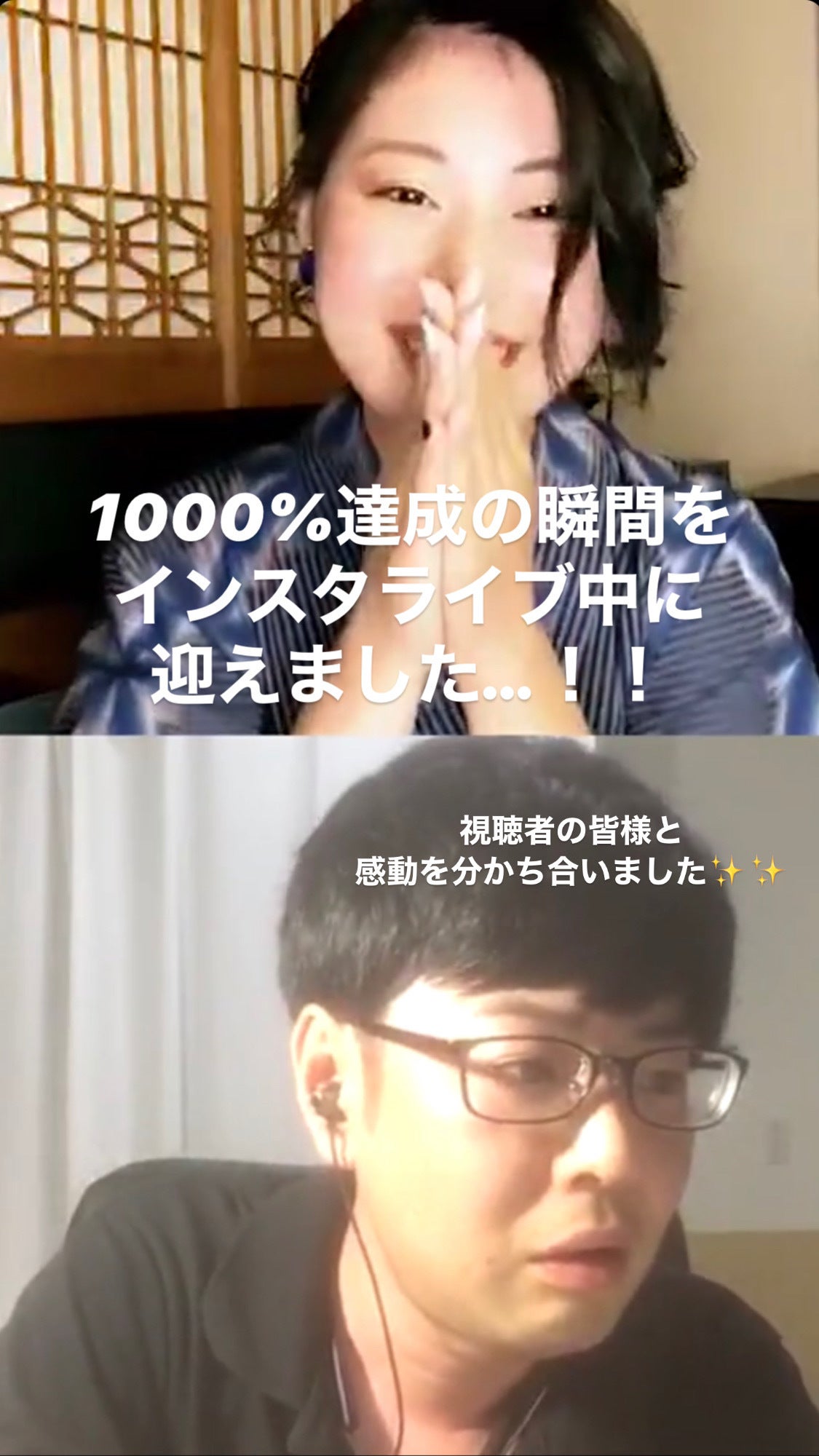 そのあと加藤さんとのライブの最中に、なんと目標金額である50万円を大きく上回る【1000%】達成…!