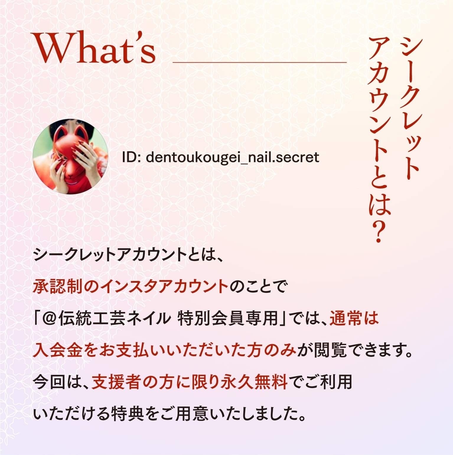 この度、【インスタグラム伝統工芸ネイルシークレットアカウント@dentoukougei_nail.secretを開設することに決定いたしました…!】