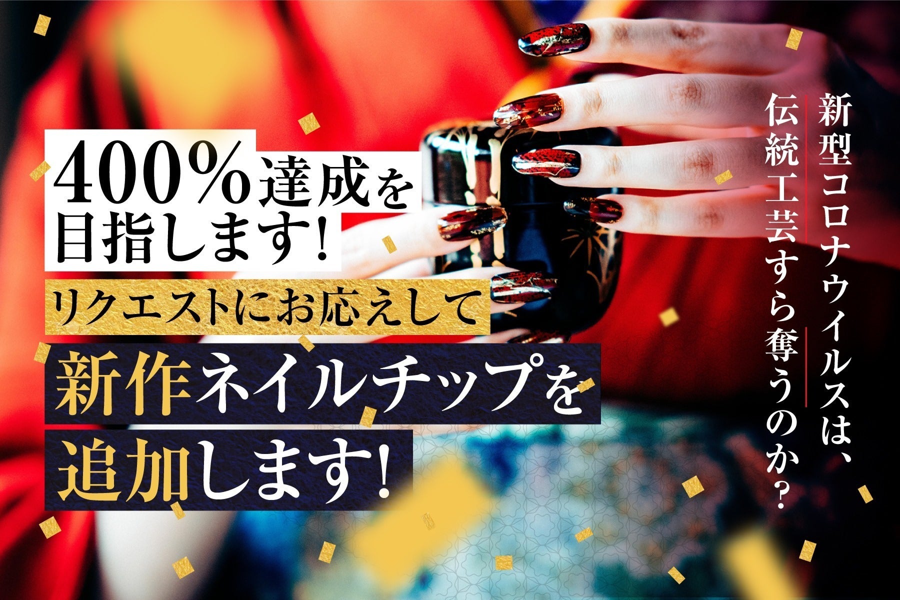 【いよいよ明日、最終日…!】5/19にスタートし、ここまで盛り上がったクファウドファンディング企画 #ネイリストが考える工芸職人応援プロジェクト も、いよいよ明日で掲載終了となります。当初の目標金額50万円に対して、皆様からの優しいお気持ちでたくさんのご支援をいただき、なんと現在目標金額の740%以上、370万円のご支援をいただいております…!もう、残り日数もないので「○%目指しますという目標は定めず、ただただ笑って終わりたい!!」と先日の加藤さんとのライブでもお話していましたが、やはり本当に嬉しいです…。最終どこまでいけるのかわかりませんが、私たちにやれることは最後の最後まで全力でやり切ることのみ。それが支援者様たちへの最大の恩返しになると信じて。最終章へのカウントダウンは、すでに始まっています。企画者である私、山田とネイリストメンバーはもちろん、職人さんたちも本当に喜んでくださって、この企画を立ち上げられたこと、皆様と一緒に作り上げられたこと、心から嬉しく思っております。さて、皆様のご要望にお応えしたいとその都度リターンを製作&発表して参りましたが、本日21時に全てのリターン商品の出品が終了となります。現在クラウドファンディングスタート当初の倍以上の商品を出品しており、普段であれば絶対にその金額では手に入れられない大変希少価値の高いものもたくさん出品させていただいております。明日 5/28 23:59:59までご支援可能となっておりますので、どうぞ最後に一目ご覧いただけると嬉しく思います。https://camp-fire.jp/projects/view/272513↑ページはこちらから↑明日、掲載期間中最後にもう一度だけ活動報告のご連絡をさせてください。少し早いですが、皆様今回はご支援をいただき、嬉しいメッセージや応援のお声をたくさんいただき、本当にありがとうございました。ネイルサロン藍rish 山田愛理
