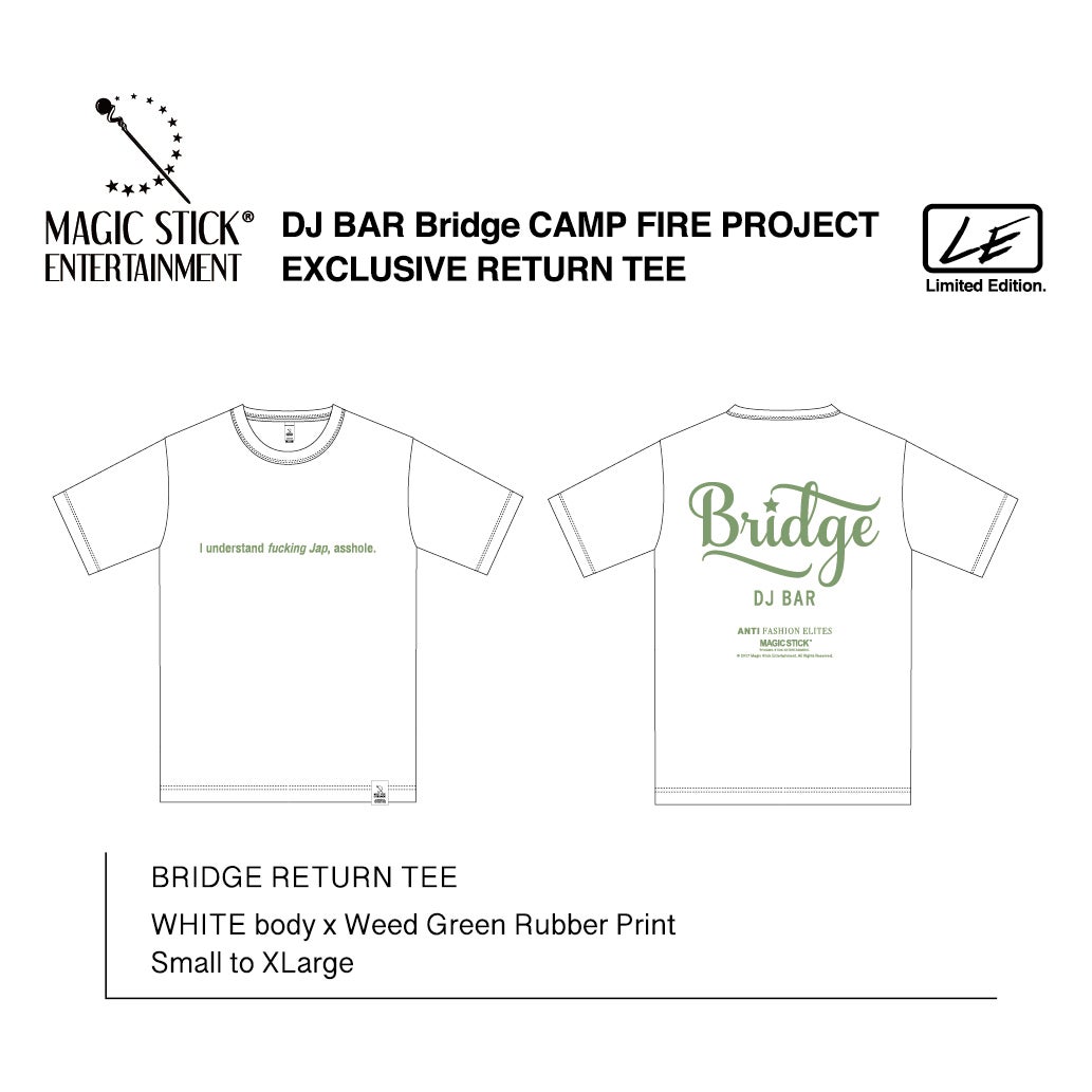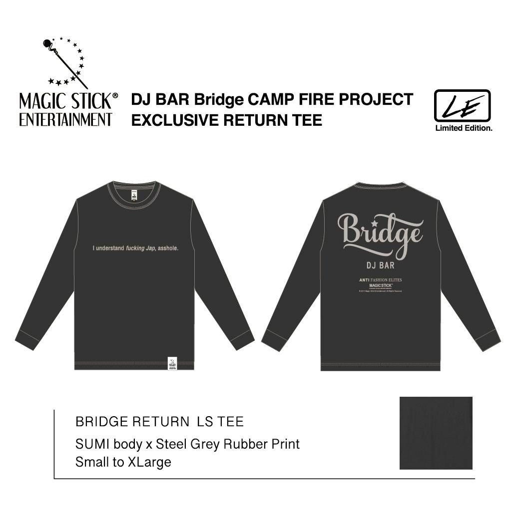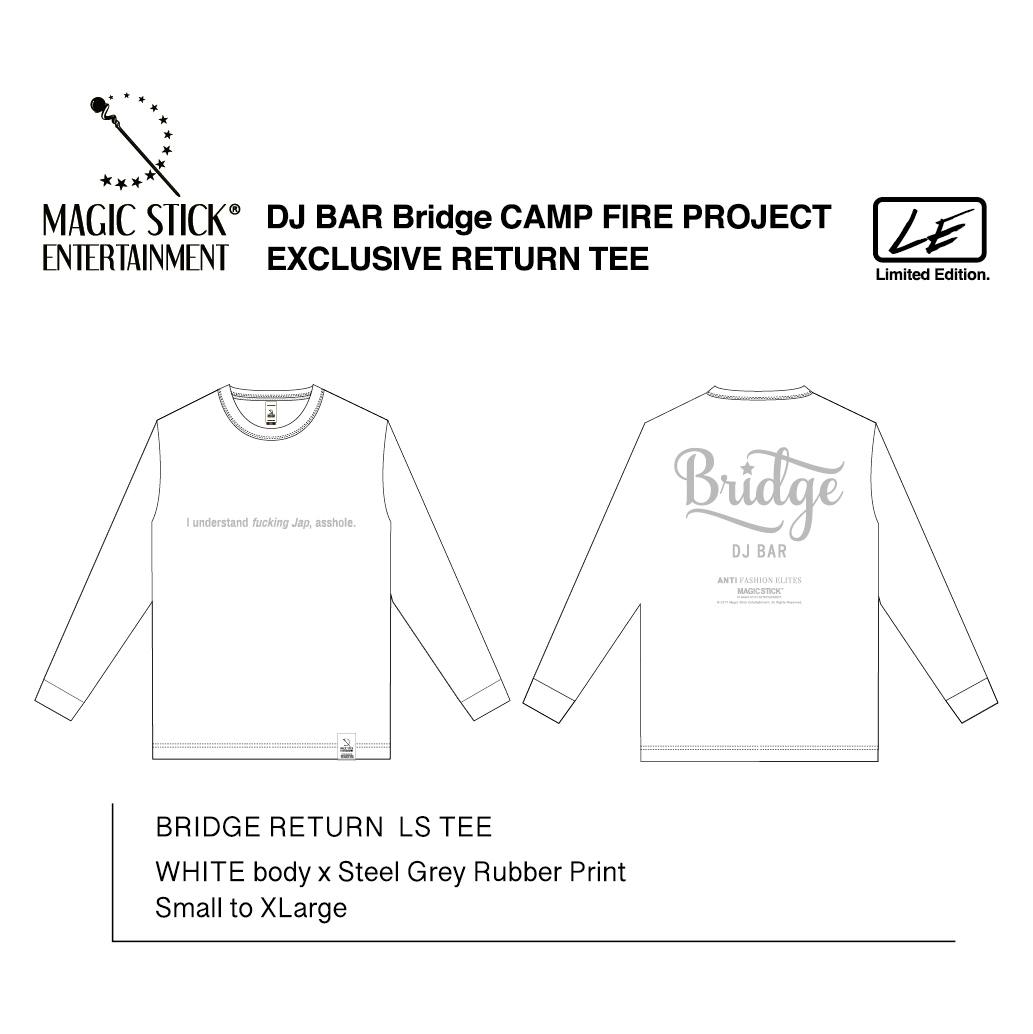 With kind cooperation by MAGIC STICK, a Harajuku-based apparel brand, we are offering a Bridge Staff t-shirt (in long and short sleeve versions). For those who purchase, we are giving away a limited-time only card that allows 5 free entries with a free drink.