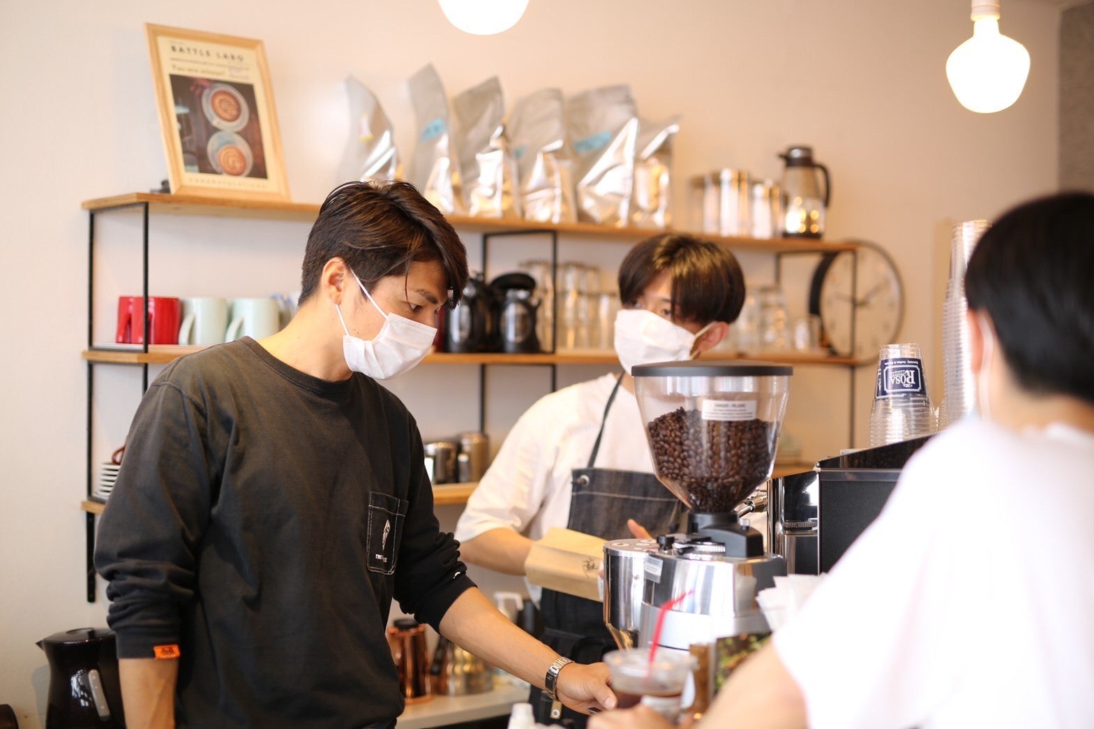 オープン当初は、店主 宮本が慣れない土地で一人で店を切り盛りしていました。宮崎での生活も3年目を過ぎた2018年頃に、オープン当初からの常連だった川崎くんを正社員として正式にロッサコーヒーに迎えることができました。