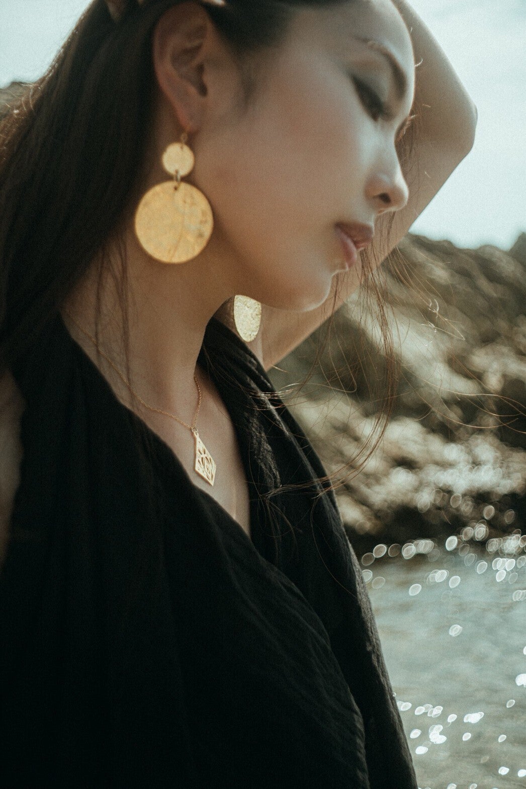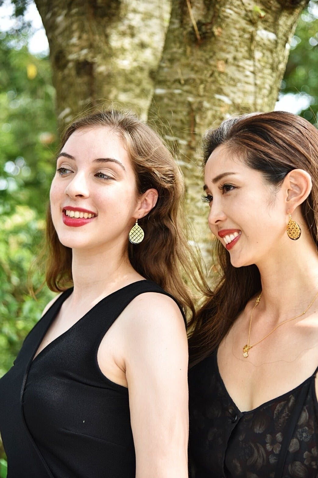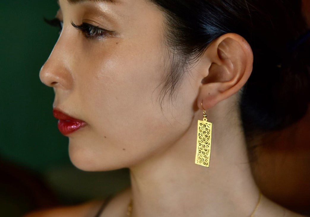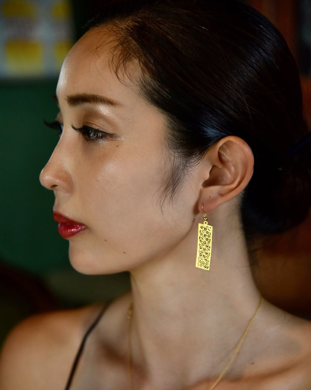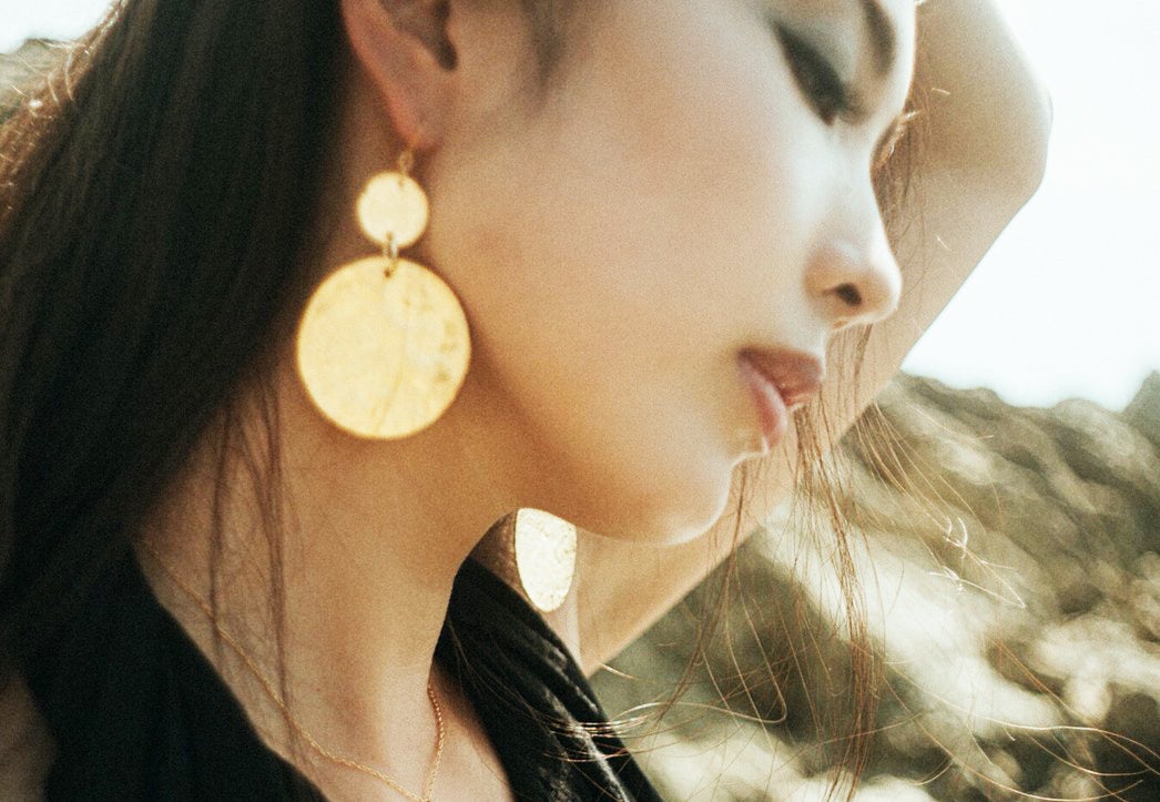 ピアニストKMさん「今まで付けたどんなイヤリングよりも軽くてビックリです!金箔 ならではの温かみがあるため、⻩色人種の肌にも自然に違和感なく馴染んでくれます。つける人の仕草や風に応じて靡く動きのあるイヤリングで、自分に寄り添ってくれている感 じがして愛おしいです。」
