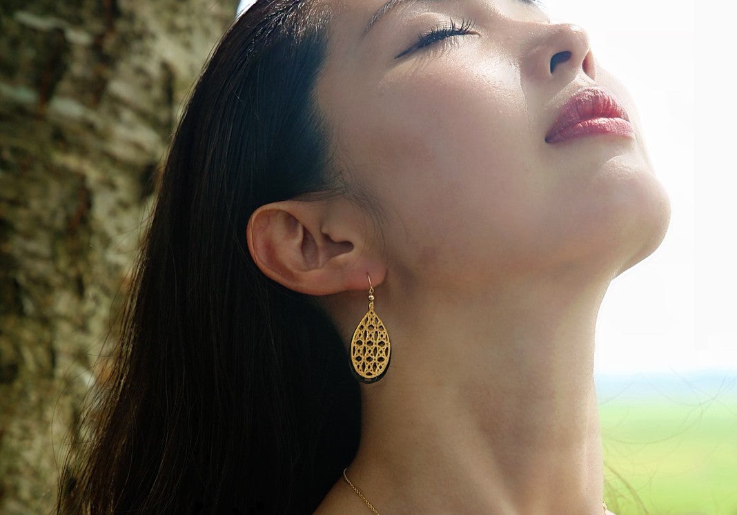 ゴールドを、軽やかに、カジュアルに楽しむ時代。それを可能にするのは、切り絵と紙と金箔のジュエリーだからこそ。新感覚のファッションをご提供して、未来のライフスタイルに向かうKIRIE BIJOU。