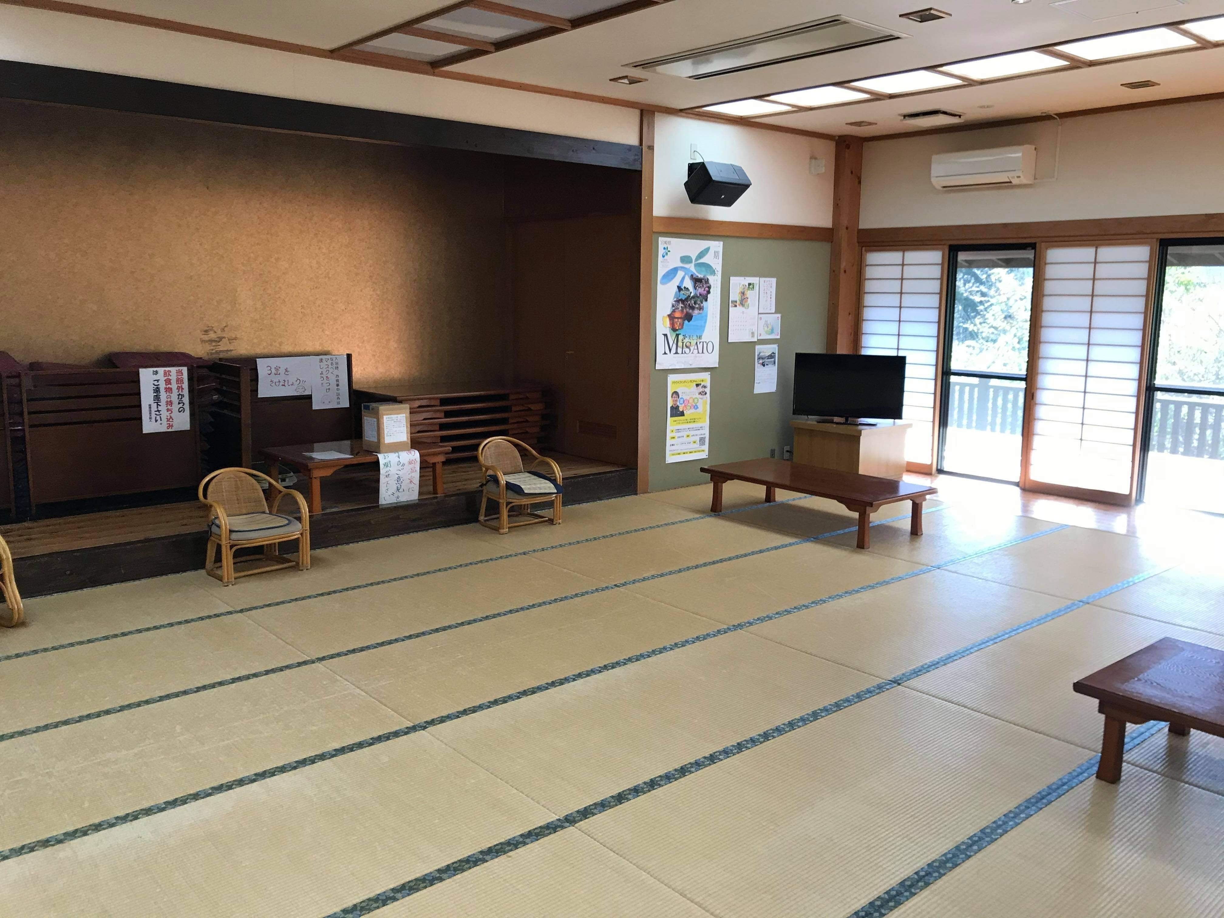 こちらは掛け流し温泉「山霧」様の休憩室。テレビ見る方は否応なしにチラシが目に入る位置にw
