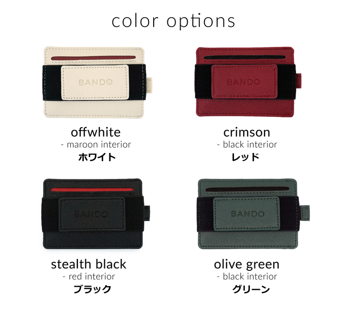 前作BANDOはブラックとネイビーの2カラーのみでしたが、BANDO2.0は全部で4カラーに。