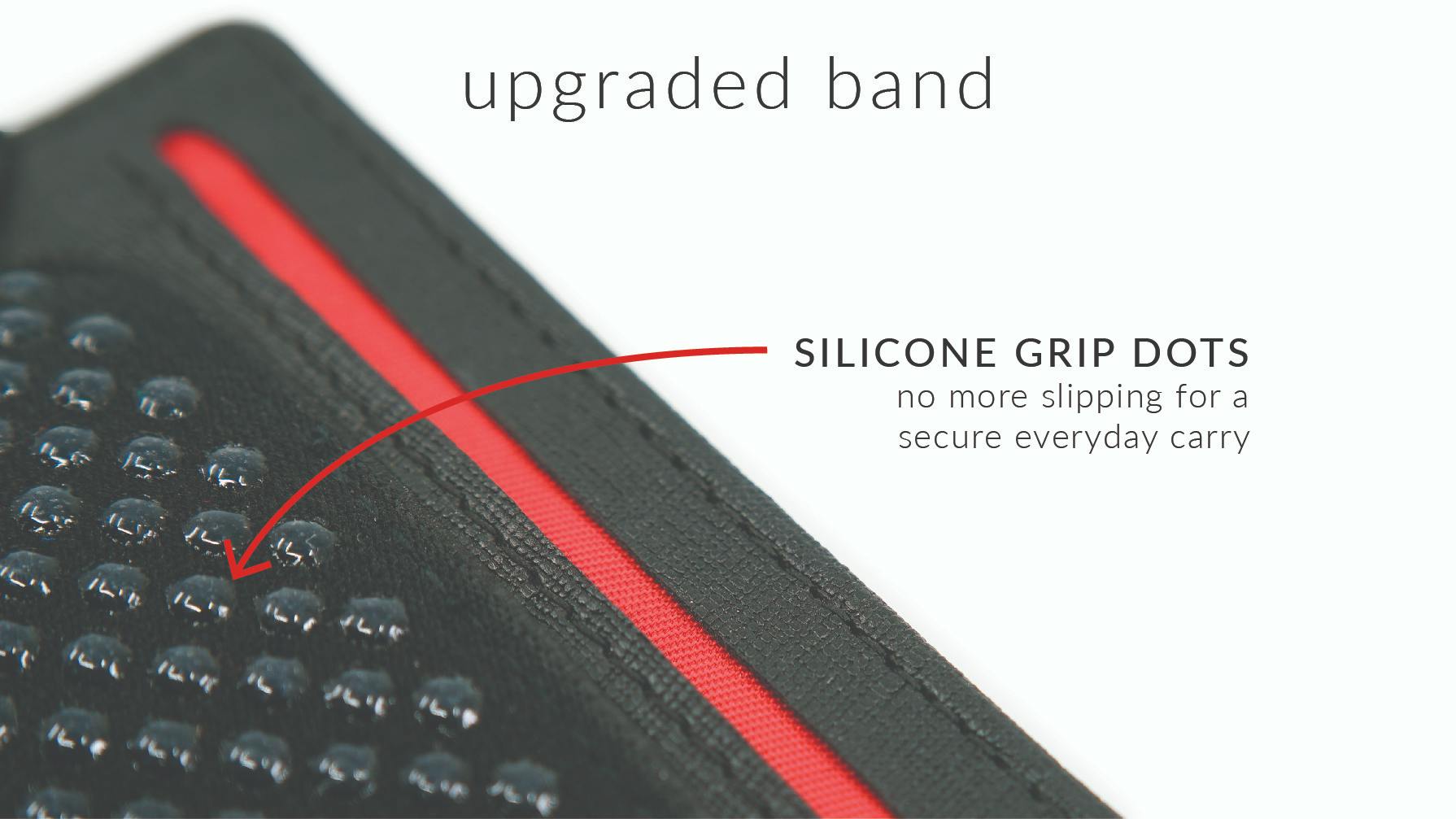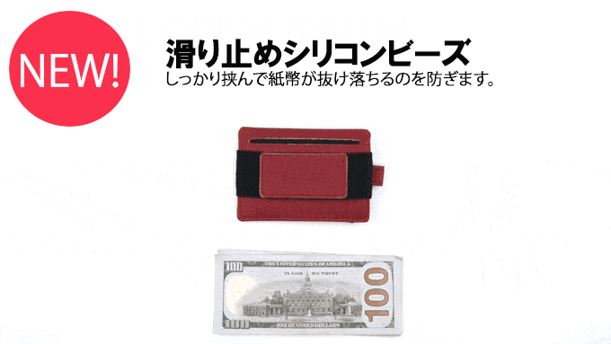 BANDO2.0ではバンドに改良を加えバンド裏側に滑り止めのシリコンビーズを施しました。少ない枚数の紙幣もしっかりと挟むことができます。
