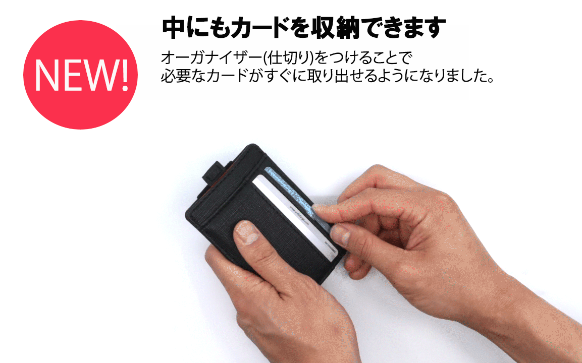 BANDO2.0では中のカードがより取り出しやすくなるようにオーガナイザー(仕切り)を新たに追加しました。