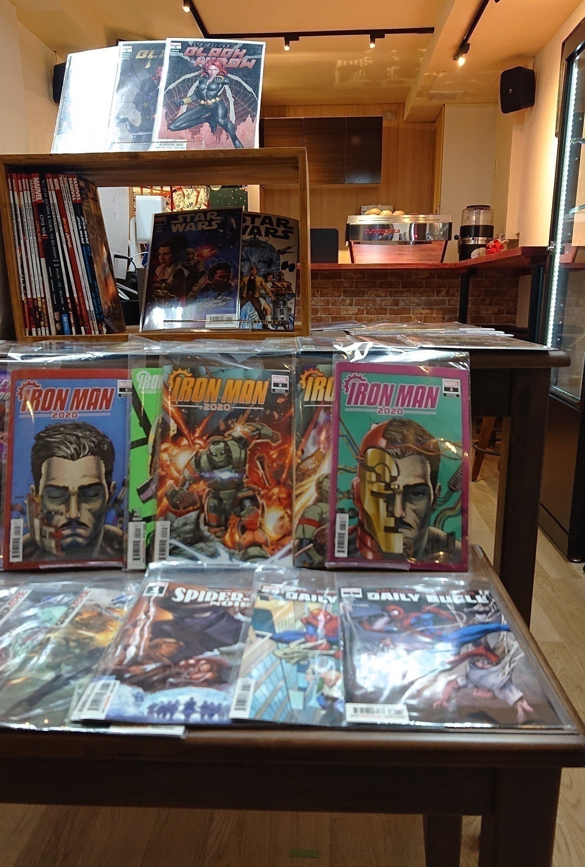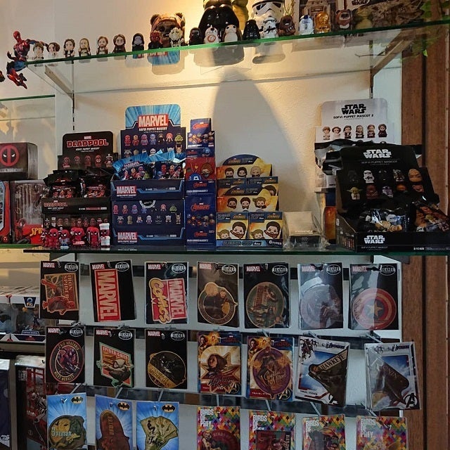 店内入って右側は、ステッカーやStar WarsやMarvelの商品が並んでます。