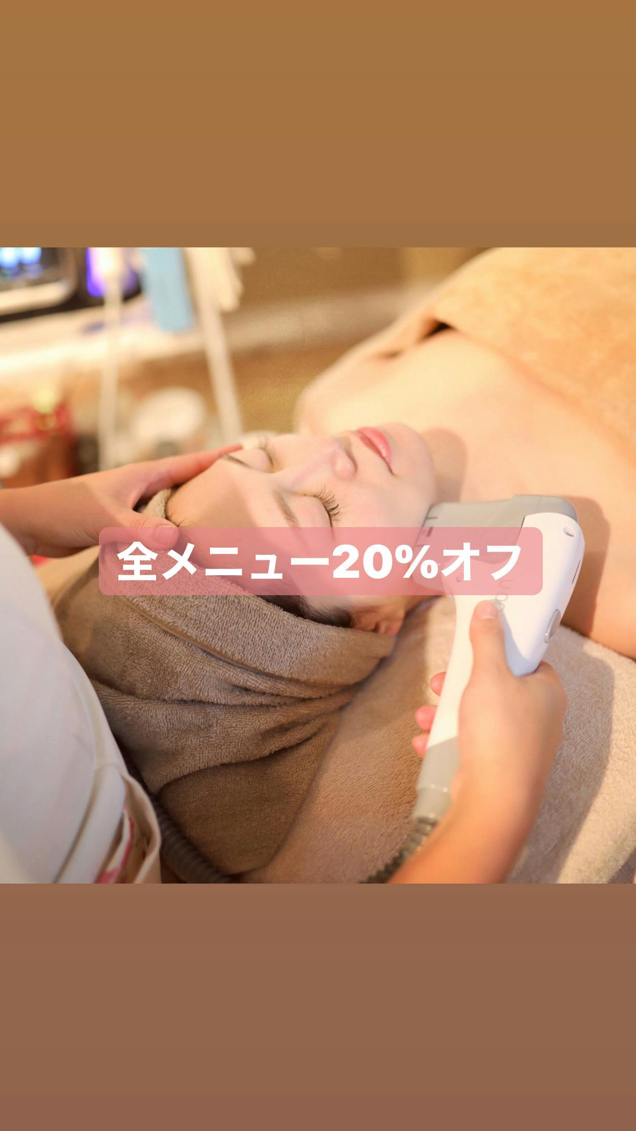 ・フェイシャルメニュー、ボディメニュー永久にALL20%オフさせて頂きます。