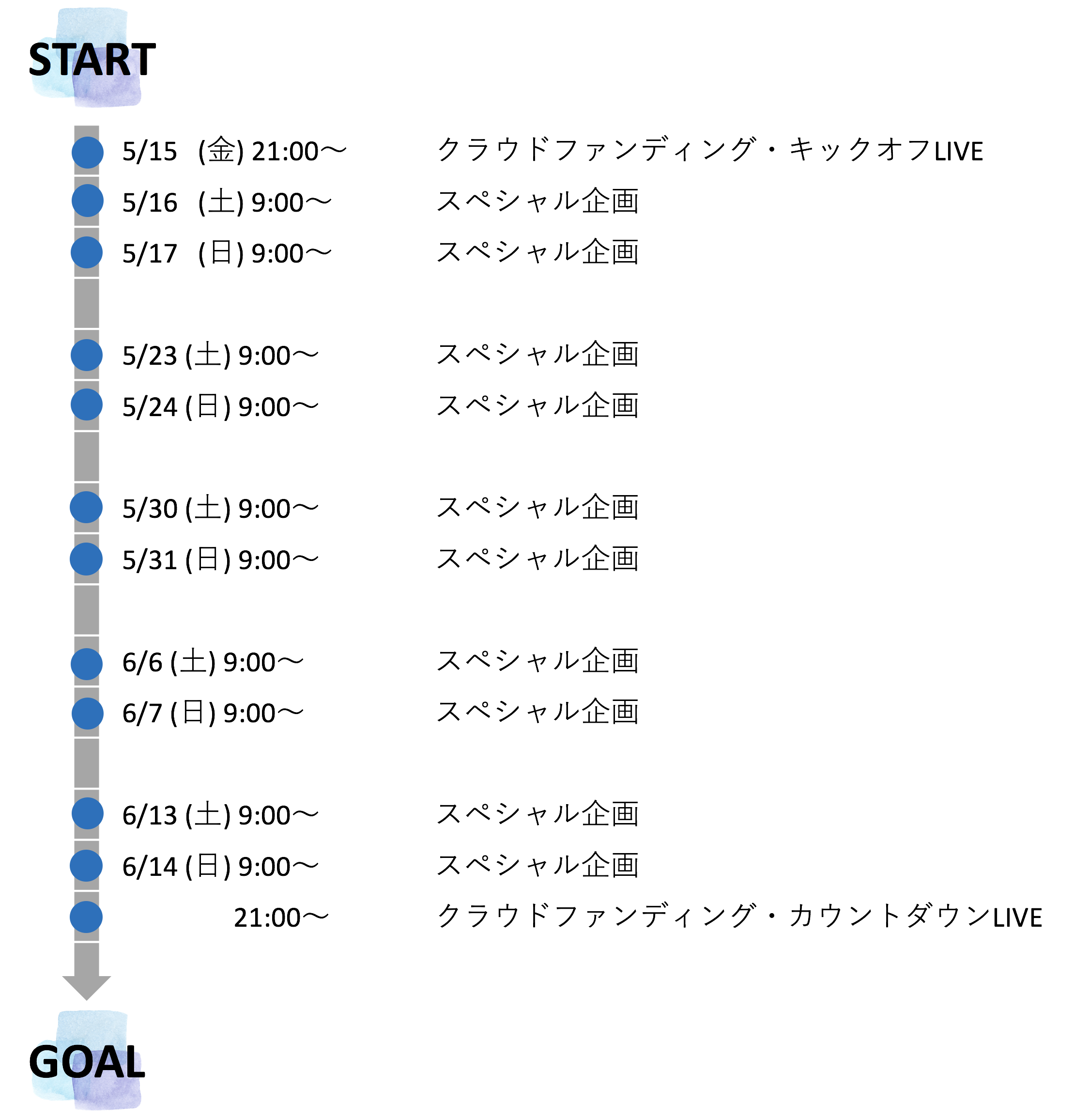 クラウドファンディングの企画中は、毎週末オンラインイベント(30分程度)を実施します。