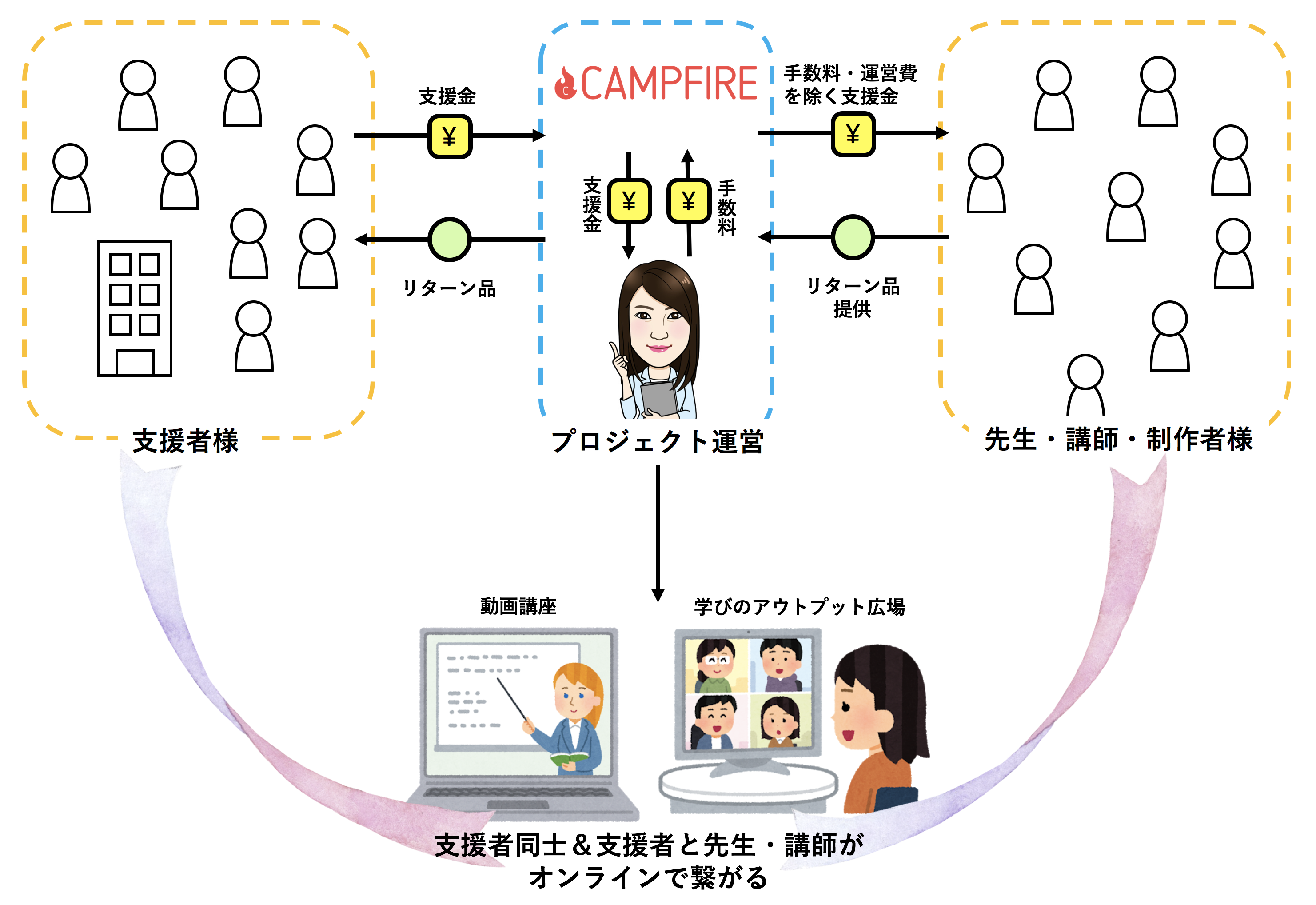皆様からの支援金は運営手数料を除き、講師・先生方へお渡しさせていただきます。あなたが学ぶことで誰かの支援になっているそのような経験もしていただきたいと思って企画しています。