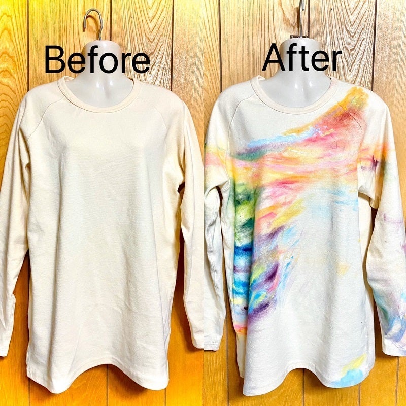 ↑(画像はイメージです)8000円支援してくださった方には、生成りのシャツにペイントをして「着れる芸術作品」をご用意します。