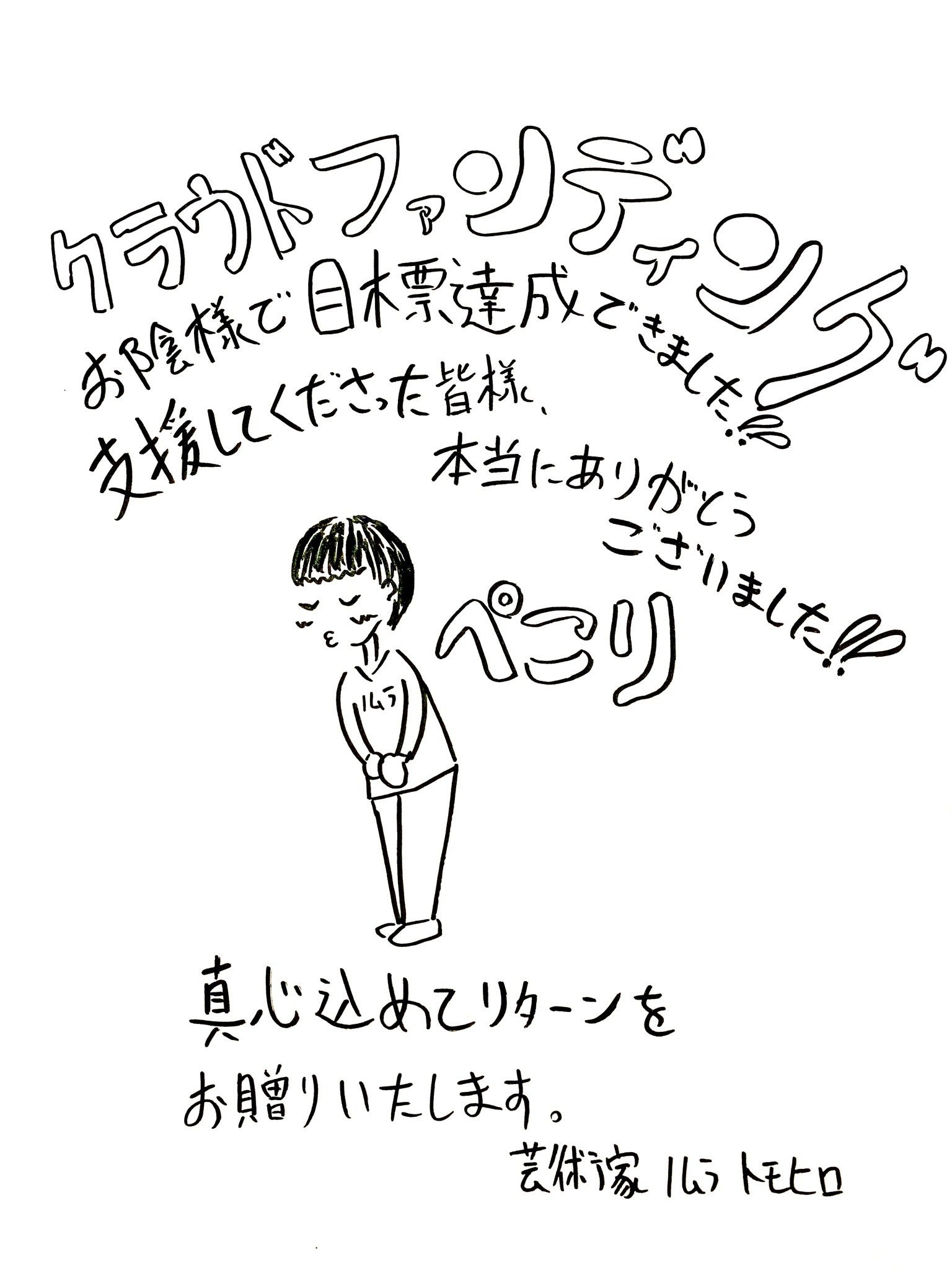 2020/05/28 12:45皆様のお陰で本日、目標金額に達成いたしました!!!Success!!!印刷会社さんからハイクオリティなポストカードやA3の複製画、画集が届いたので、真心込めてサインさせていただきます(*^^*)リターンをお贈り出来る幸せを噛み締めております。本当にありがとうございます!まだ残り4日ございますので、支援募集しています!引き続き頑張りますので、宜しくお願い申し上げます。芸術家 ノムラトモヒロ もっと見る