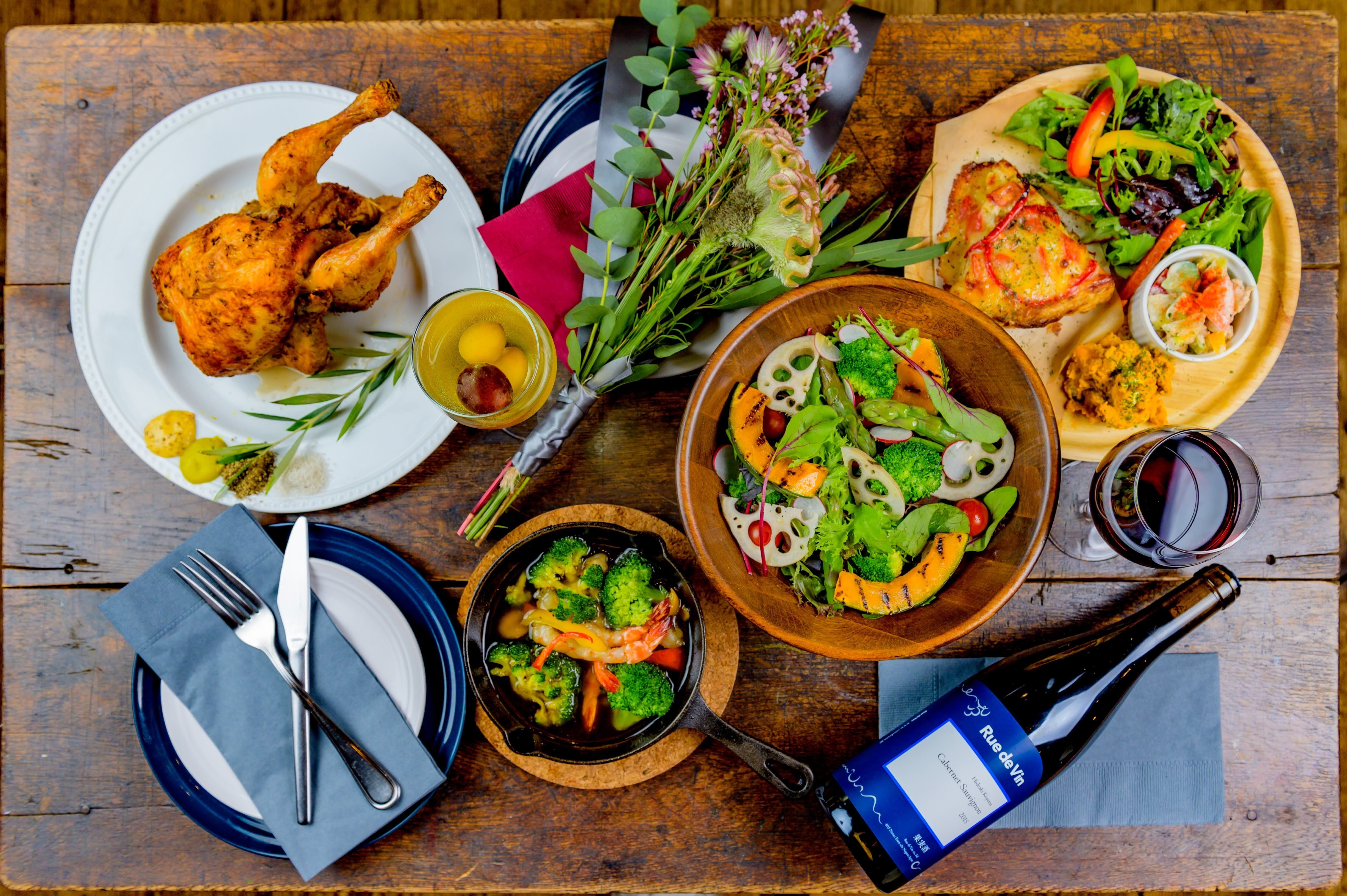 一番人気のメニューは、自家製のスパイスでマリネして専用のオーブンでじっくり焼き上げた「ロティサリーチキン」。いずれのメニューも素材や調味料、仕込みにこだわり、お手頃な価格感で美味しい料理を楽しめる空間づくりに励んでいます。