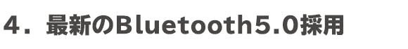 今もよく使われているBluetooth4.2と比較して通信範囲が約4倍、転送速度が約2倍になった最新のBluetooth5.0を採用しています。