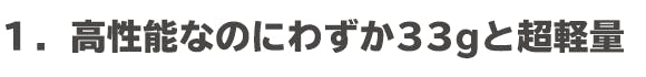 機能を妥協すること無く、軽量化にこだわりました。長時間付けることを考えると軽ければ軽いほどいいです。