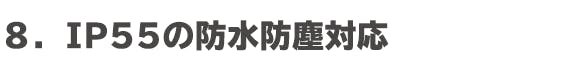IP55規格に対応した防水防塵性能がありますので屋外でも安心してご利用いただけます。