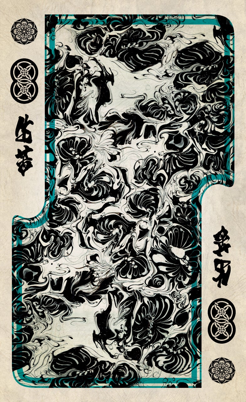 6~9までの数も2つの円で事足りますが、このゲームでは10以上の札が必要ない事、天地の位置に関わらず可読可能に、と2つの理由からこの形にしました。