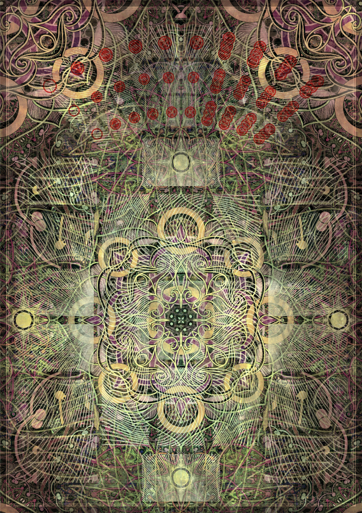 説明は動きや体験を伴わなければ理解し難い物と思います。動画でお伝えする形にしたいと考えているのですが、印刷したものが届いてから、あくまでオマケ、という形で作れたらと考えています。モックで撮影しようかとも考えたのですが雰囲気が出ないのも良くないと思い見送りました。点数表の駒を硬貨で代用していたのは狐狗狸の様で見た目も動きも面白い物でした。実際のパッケージには金属の透かしパーツと硝子カボションを封入予定です。ルールは当初予定していたものから大きく変わりました。札は四苦八苦と八正道の9種のみで、五行のようにそれぞれが影響し合う効果を持ち、相手が伏せて置いた札を予想して自身も同じ札を出すことで進行するものでした。決定したルールでは苦の相関関係は無くなっていますが、場に札を重ねることで数を近づける、苦しみを理解し寄り添う、という効果でイメージを残しています。逆に八苦札はどのように扱おうかと決めあぐねていたのですが、ルールを作っていく中で意味と効果が合致していきました。四苦に比べて八苦はその意味を想像し辛いものと思います。それについて説明するというのはゲーム内で表現したかったもののひとつでした。札の背面はそれぞれの苦に充てた花をあしらっています。曼荼羅は基本的な様式がいくつかあります。建築を俯瞰視したもの、生態系を図案化したものなど様々ですが、いくつかの特徴的なシルエットを踏襲しながら糸が層になって絡み合うような図を描きました。ゲームの進行は実際の曼荼羅の読み方に倣って反時計回りに進み下部から中心へ至るようになっています。目標値札は当初年齢に例えてルールを作成していました。年功序列を思わせるような点数計算はあまり好ましいものと思わなかったのですが、わかりやすいシステムとして採用しました。若くして死ぬことも老いてから知ることもあります。時間は経験を得られる機会が訪れる量を示すものであって、苦しみの量を示すものではありません。ダイスそれぞれの面に数が割り当てられるように、数値は横並びに整列しているものではなくあくまで個人を示す記号と解釈します。当初はどちらが早く苦を除き徳を集めるか、というルールで、八苦の札は相手の行動を妨害する意図で使用されるものでした。効果の内容的にはほぼ変化していませんが、協力して進むという設定にした事で、悪意を持って札を切るという状況を無くすことにしました。両者が対立する方がプレイ後の達成感は大きいかとも考えましたが、コンセプト上、相手に攻撃を与えて勝利へ至るという図式は望ましいものではなく、協力して同じ目標を目指すものとなりました。
