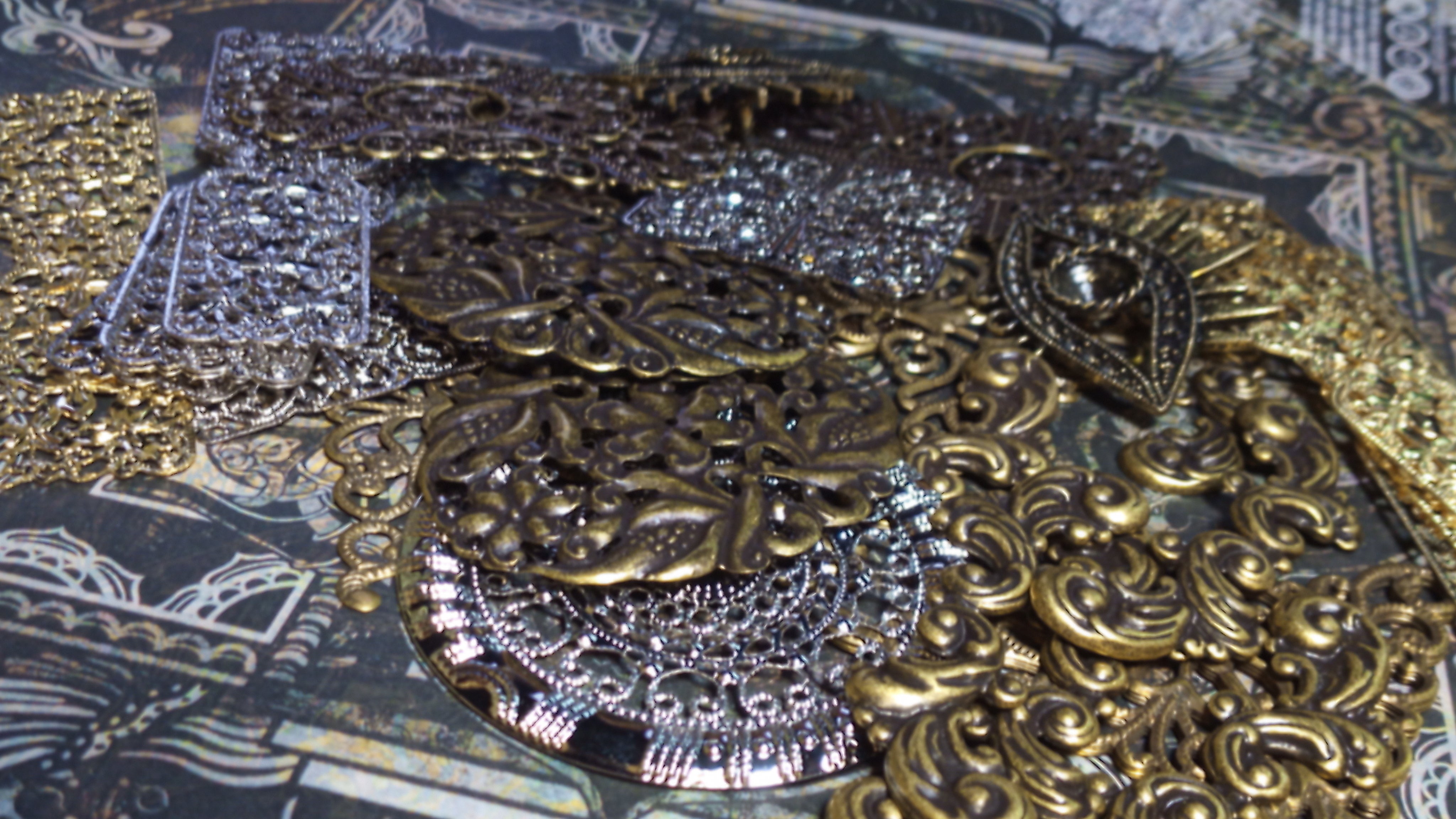 実際のパッケージには金属の透かしパーツと硝子カボションを封入予定です。