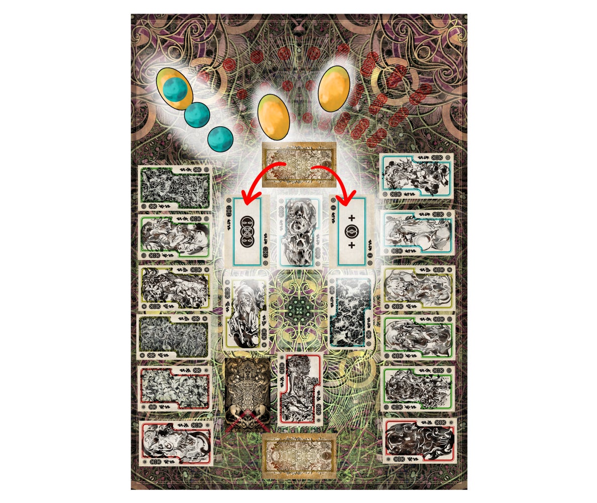 ゲームの進行は実際の曼荼羅の読み方に倣って反時計回りに進み下部から中心へ至るようになっています。