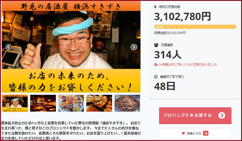 なんと1週間で目標金額である300万円に到達いたしました!!!