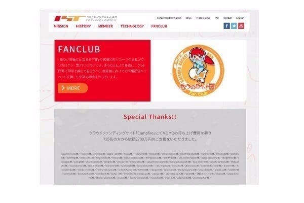 参考)インターステラテクノロジズ MOMO5号機特設ページ