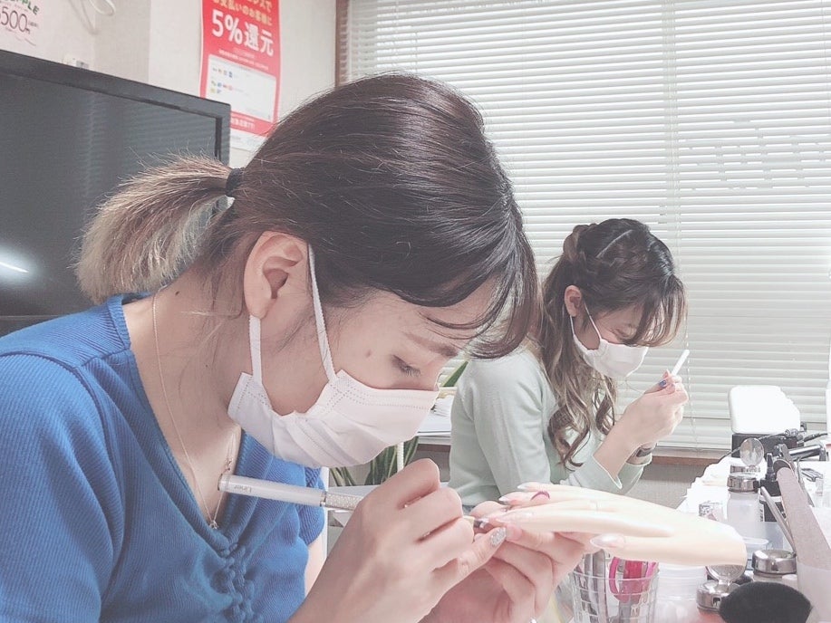 この休業中はモデルさんやオーナーの手足を使った実務研修、ハンドのマネキンを使った課題に一生懸命取り組み、自宅練習も欠かさず、成長し続けています。
