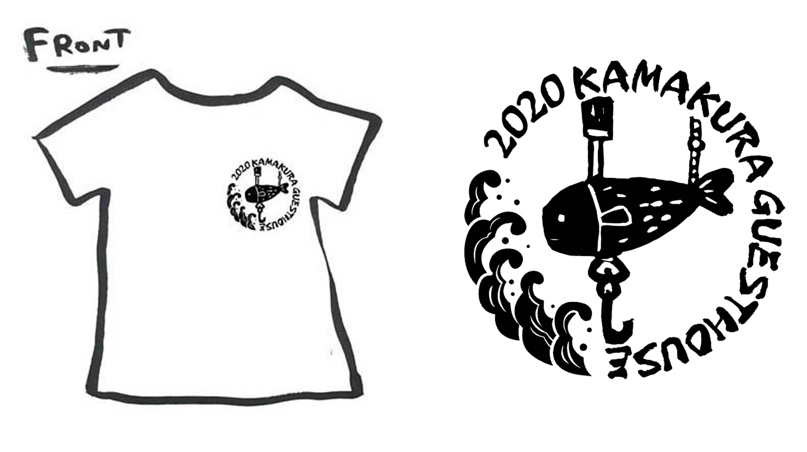 そんな言葉をいただいてとても嬉しいと同時に、せっかくならば、子供らしくかわいくて、鎌ゲスぽいものを…と思い、鎌ゲスのアイコンでもある囲炉裏のおサカナを右胸のロゴにデザインしました。お魚は私が描いたものをスタッフが消しゴムハンコにしてくれたものです。2020の記念ロゴも加えて、鎌ゲスのHPも作ってくれた にじぐもさんに協力してもらい完成いたしました。