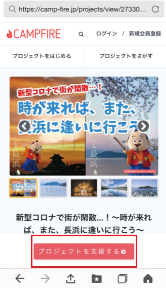 ①プロジェクトを支援するボタンをクリックします。
