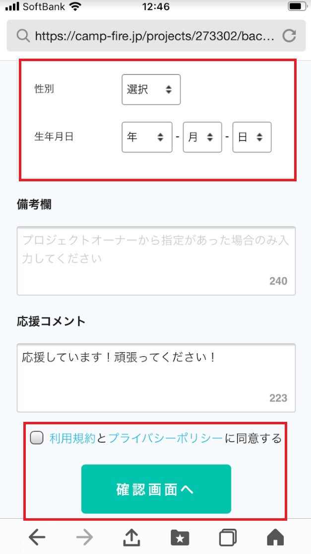 ⑤利用規約のボタンに✔を入れます。