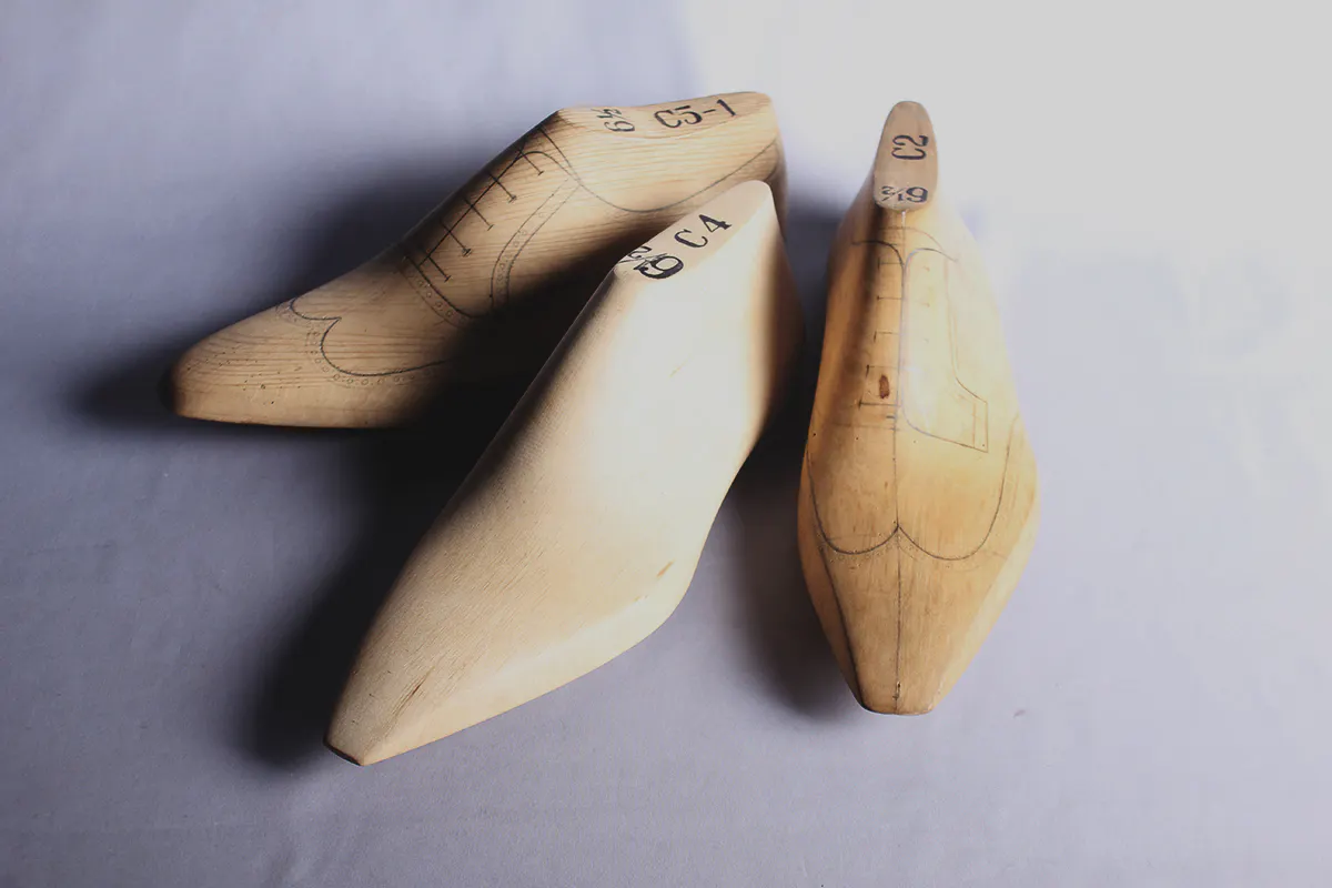 靴を作る上で非常に重要な木型。フィッティングや履き心地を左右します。
