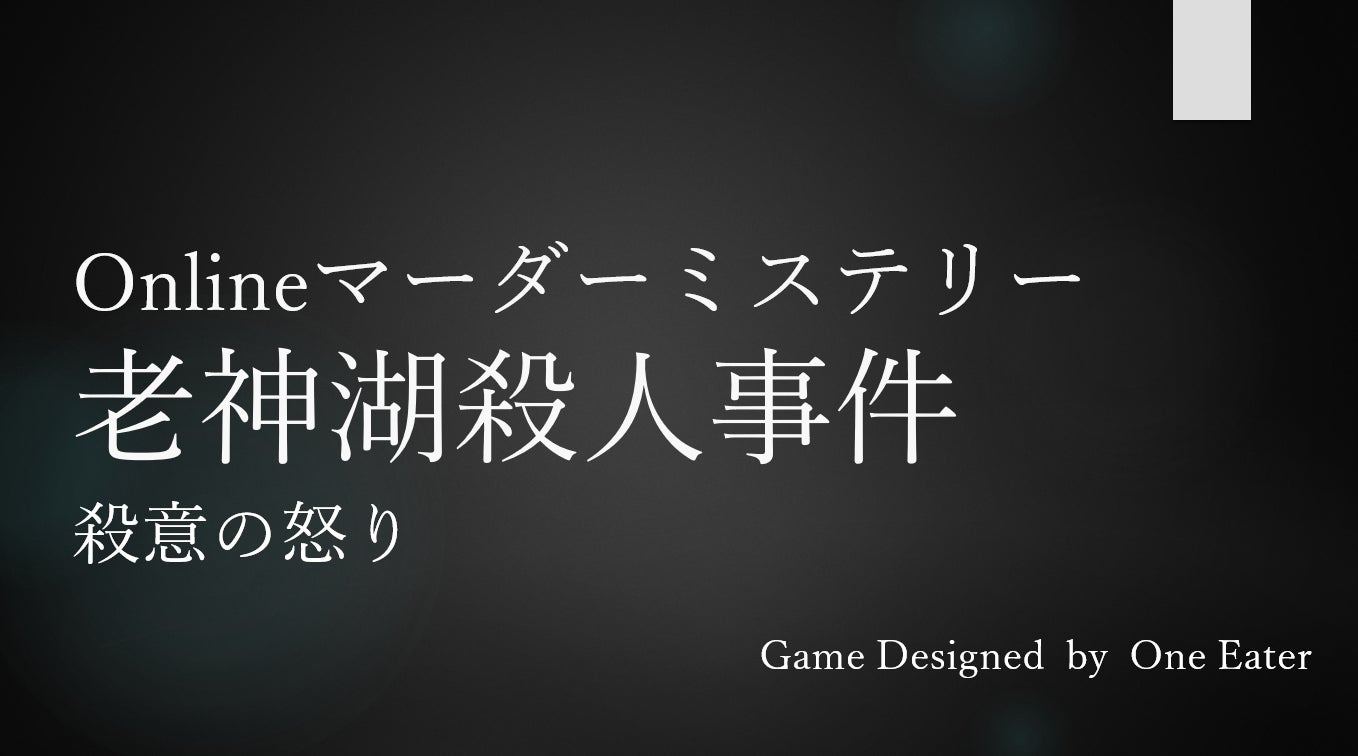 第1作「老神湖殺人事件」を制作し、公開から約1ヶ月で400人以上の方にプレイ頂きました。(作者自身も50公演以上を実演)