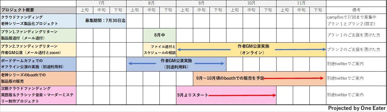 以上迄が本クラウドファンディングにおけるリターンと公約となります。そして下記は今後のスケジュールとなります。
