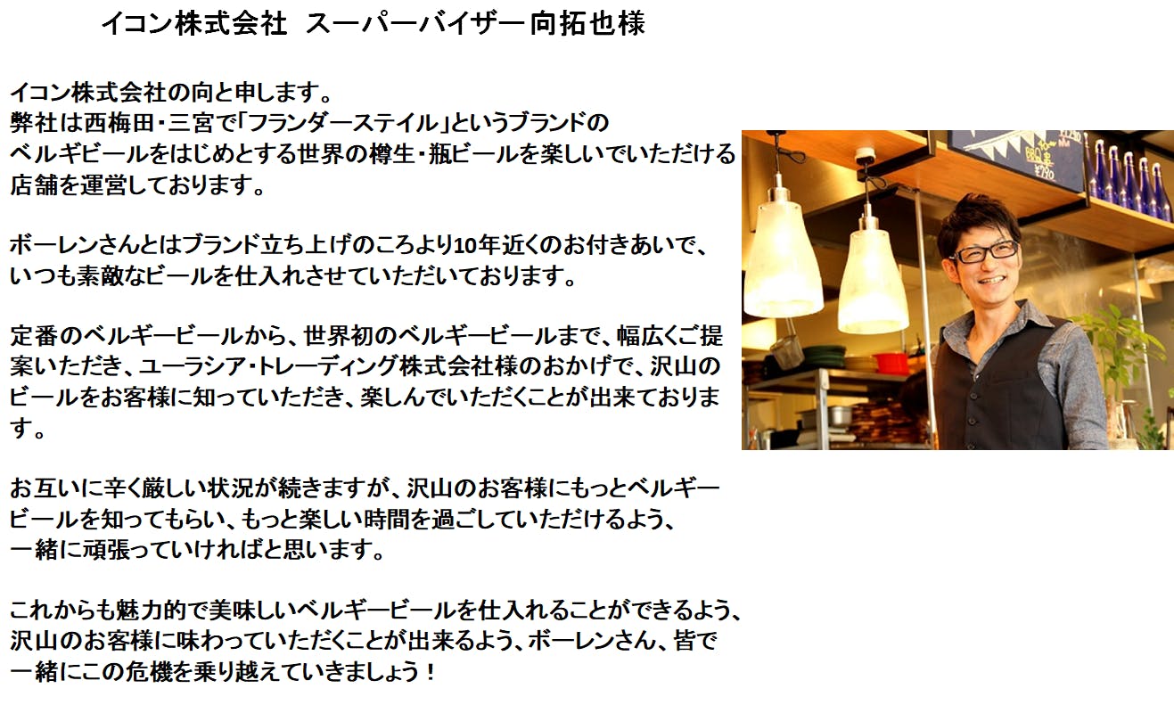 お世話になった日本への恩返しとして、「高価でなかなか毎日飲むことのできないベルギービールを手頃な価格で日本の皆さんに提供したい」「ビールを通してベルギーの長いビールの歴史と文化を伝えたい」という思いは日々募り、